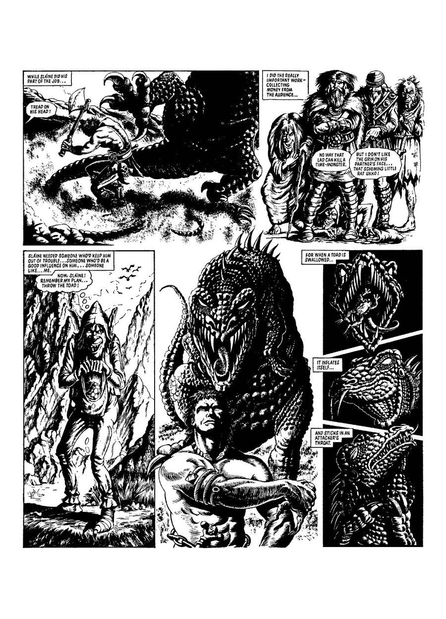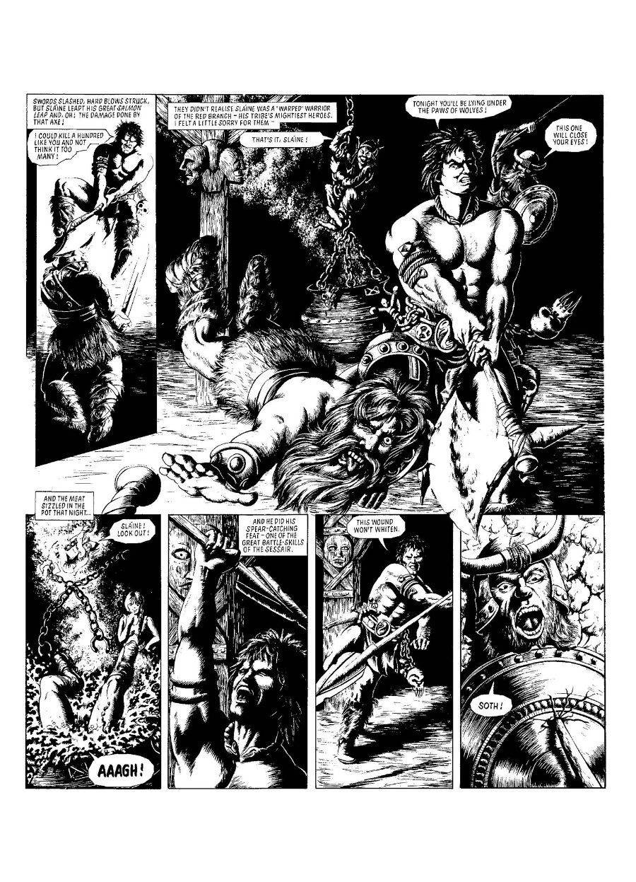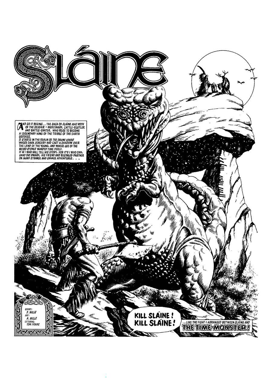 Sláine Mac Roth of the Sessair tribe is known as the Warped Warrior – a mighty barbarian who can master the ‘warp-spasm’, harnessing the power of the Earth to transform into a monstrous creature. Accompanied by his dwarf sidekick, Ukko, and wielding his legendary axe Brain-biter, he travels Tir-Nan-Og – ‘The Land of the Young’ – an ancient and magical realm marred by warring tribes and ruled by merciless gods.
