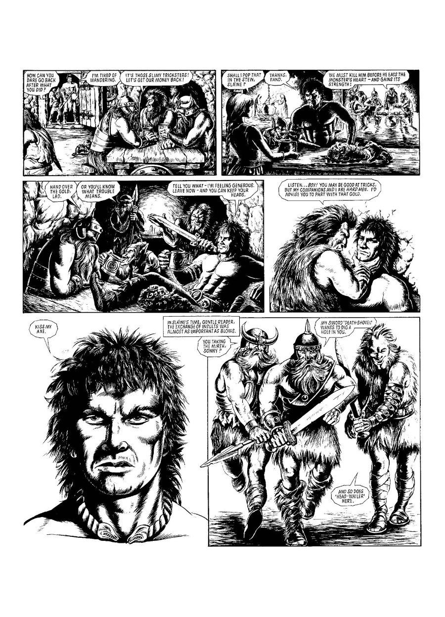 In the first Definitive Edition you’ll meet a young, reckless and angry Sláine as he lives in exile, travelling with his repellent dwarf companion, Ukko. The series quickly introduces readers to the customs and wonders of his world and the horrors, like the Sloughs: sinister magicians who worship death and destruction and can raise armies of the dead to do their dark bidding…