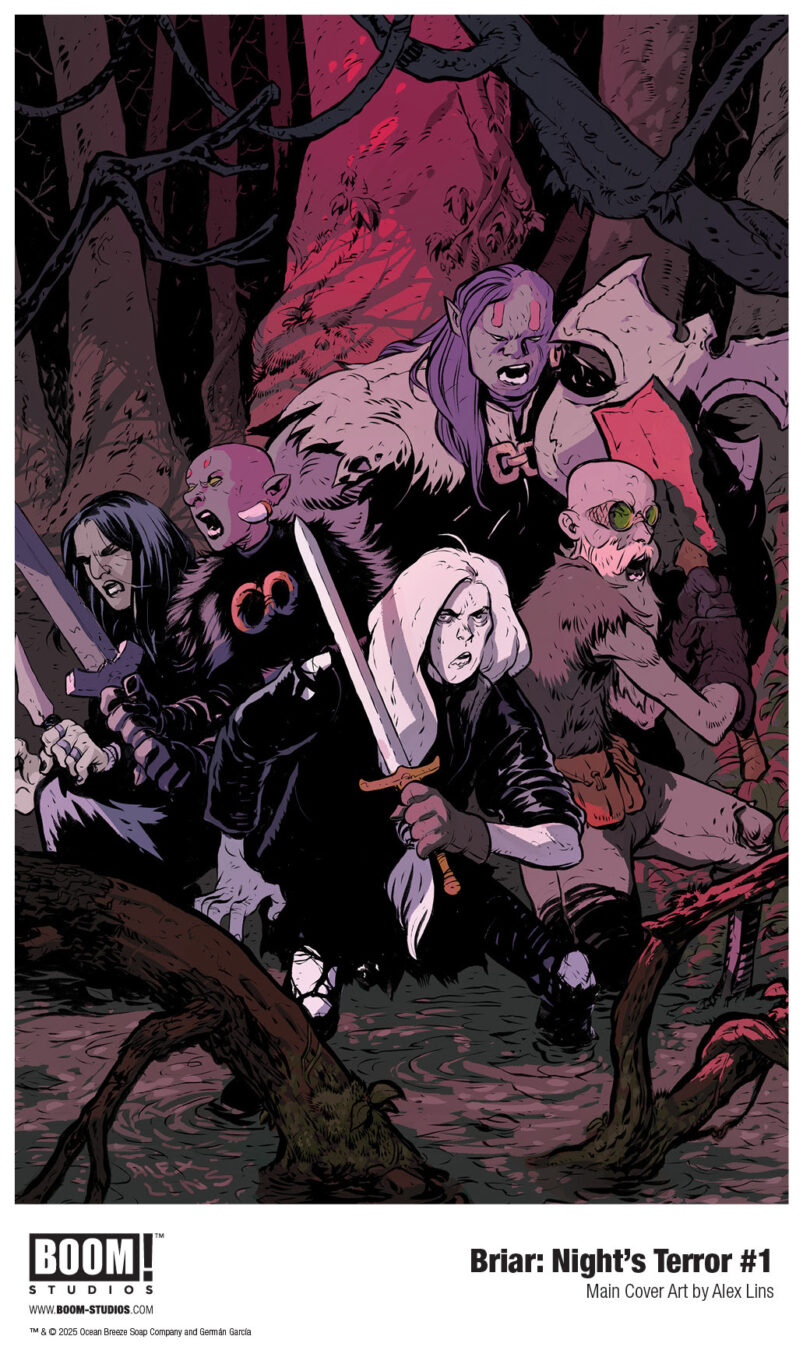 BRIAR: NIGHT’S TERROR #1 is the newest release from BOOM! Studios’ eponymous imprint, home to critically acclaimed original series, including BRZRKR by Keanu Reeves, Matt Kindt, and Ron Garney; Something is Killing the Children by James Tynion IV and Werther Dell’Edera; bestselling horror anthology Hello Darkness; Grim by Stephanie Phillips and Flaviano; Stuff of Nightmares by R.L. Stine and A.L. Kaplan; A Vicious Circle by Mattson Tomlin and Lee Bermejo; Ghostlore by Cullen Bunn and Leomacs; Rare Flavours by Ram V and Filipe Andrade; Underheist by David and Maria Lapham; Animal Pound by Tom King and Peter Gross; Minor Arcana byJeff Lemire; Vicarious by Ryan Parrott and Eleonora Carlini; The Creeping Below by Brian Azzarello and Vanesa Del Rey; Bronze Faces by Shobo, Shof, and Alexandre Tefenkgi; In Bloom by Michael W. Conrad and John J. Pearson; and When I Lay My Vengeance Upon Thee by Gus Moreno and Jakub Rebelka. The imprint also publishes popular licensed properties, including Dune: House Corrino from Brian Herbert, Kevin J. Anderson, and Simone Ragazzoni; Power Rangers Prime by Melissa Flores and Michael YG; and The Expanse: A Little by Andy Diggle, Wes Chatham, and Francesco Pisa.