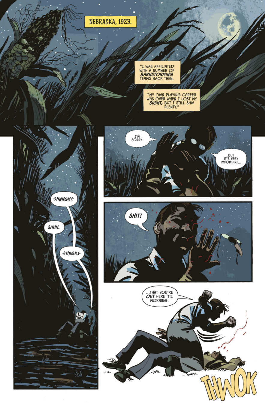 Series artist, Russell Mark Olson added, “Growing up in the ’80s, in the backwoods just south of St. Louis, meant two things: chronic poison ivy rash and Cardinals baseball. Whitey Herzog, Ozzie Smith, Willie McGee… baseball came first, comics second. When I was offered the chance to work on a baseball book with Joe Harris, I nearly bit Mike Marts’s handoff. Add to the mix a Jazz-age backdrop with dark, supernatural elements—crumbs!—what’s not to love? Joe’s absolutely knocked the scripting out of the park. Each issue is filled with quality baseball action, shadowy mystery, and a fair amount of paranormal grit. This comic has hit the sweet spot.”