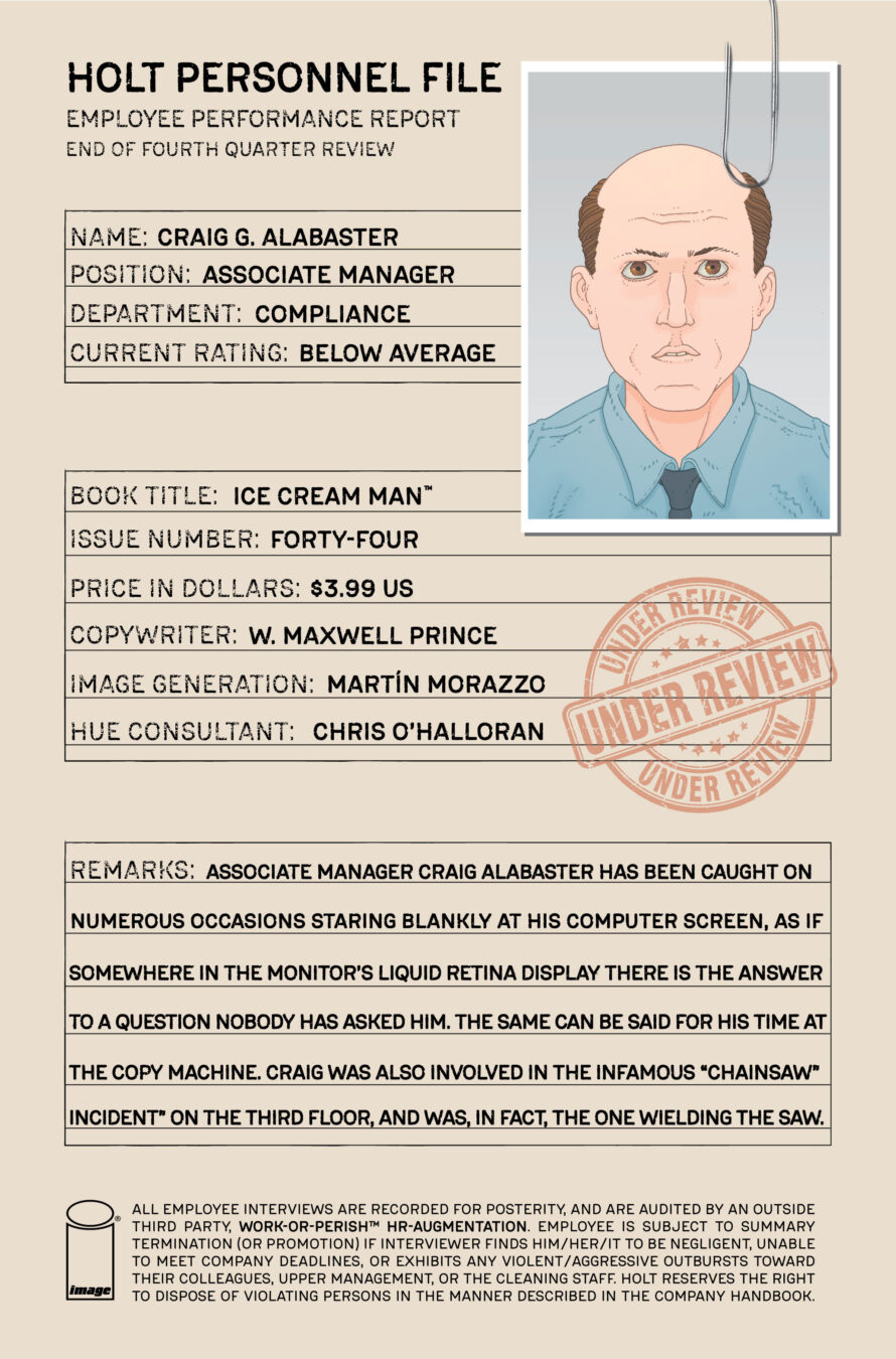 Ice Cream Man #44 will be available at comic book shops on Wednesday, July 23 (Final Order Cutoff deadline for retailers is June 30):