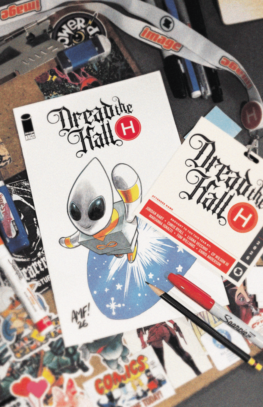 Dread the Hall H 2026, a 48-page, full-color, one-shot, arrives July 22, 2026, from Syzygy/Image Comics. Preorder through your local comic shop or favorite retailer and secure your pass before the doors open.