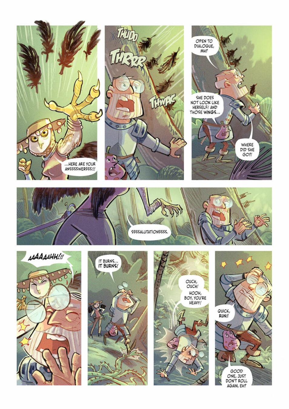 ct was truly a challenge for me—my first time working on something so rich and complex. My goal was to capture the sweetness that flows through the entire story, stylizing my illustrations to reflect memories from my own childhood. Drawing these pages transported me back to when I was seven years old, building cardboard forts in my grandparent’s garden with my friends and embarking on epic adventures. Back then, a strange-looking tree could easily transform into a fierce Silver Dragon, one you could defeat only by expertly throwing a Talking Pear.