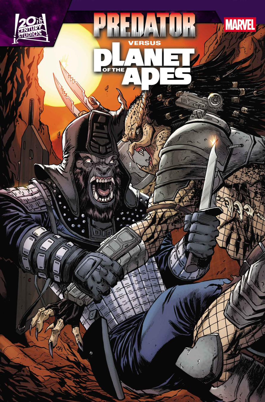 This July, the galaxy’s greatest hunter finds new prey on a world ruled by apes in PREDATOR VS. THE PLANET OF THE APES, a five-issue Marvel Comics series written by Greg Pak (Planet Hulk) and drawn by Alan Robinson (X-Men Infinity Comic). Made in collaboration with 20th Century Studios, the series marks the first-ever crossover between the two groundbreaking sci-fi franchises and is the latest in Marvel’s line of acclaimed 20th Century Studios storytelling that includes recent hits like Planet of the Apes Vs. Fantastic Four and Predator: Bloodshed. Blending the mythology as well as the themes of both universes, the revolutionary saga pushes both Yautja and ape to their limit in a brutal battle for dominance!