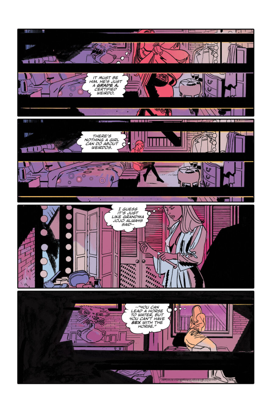 Continued Boss “Adriano and I are trying to make something that feels tactile and constant. It’s a love letter to the Italian slasher genre of Giallo, with all the blood and nudity you’d expect. It’s a critique of the True Crime genre, and our cultural fascination with serial killers. But mostly it’s a fun and nasty comic book, which are my favorite things in the world. I hope you’ll join us.”