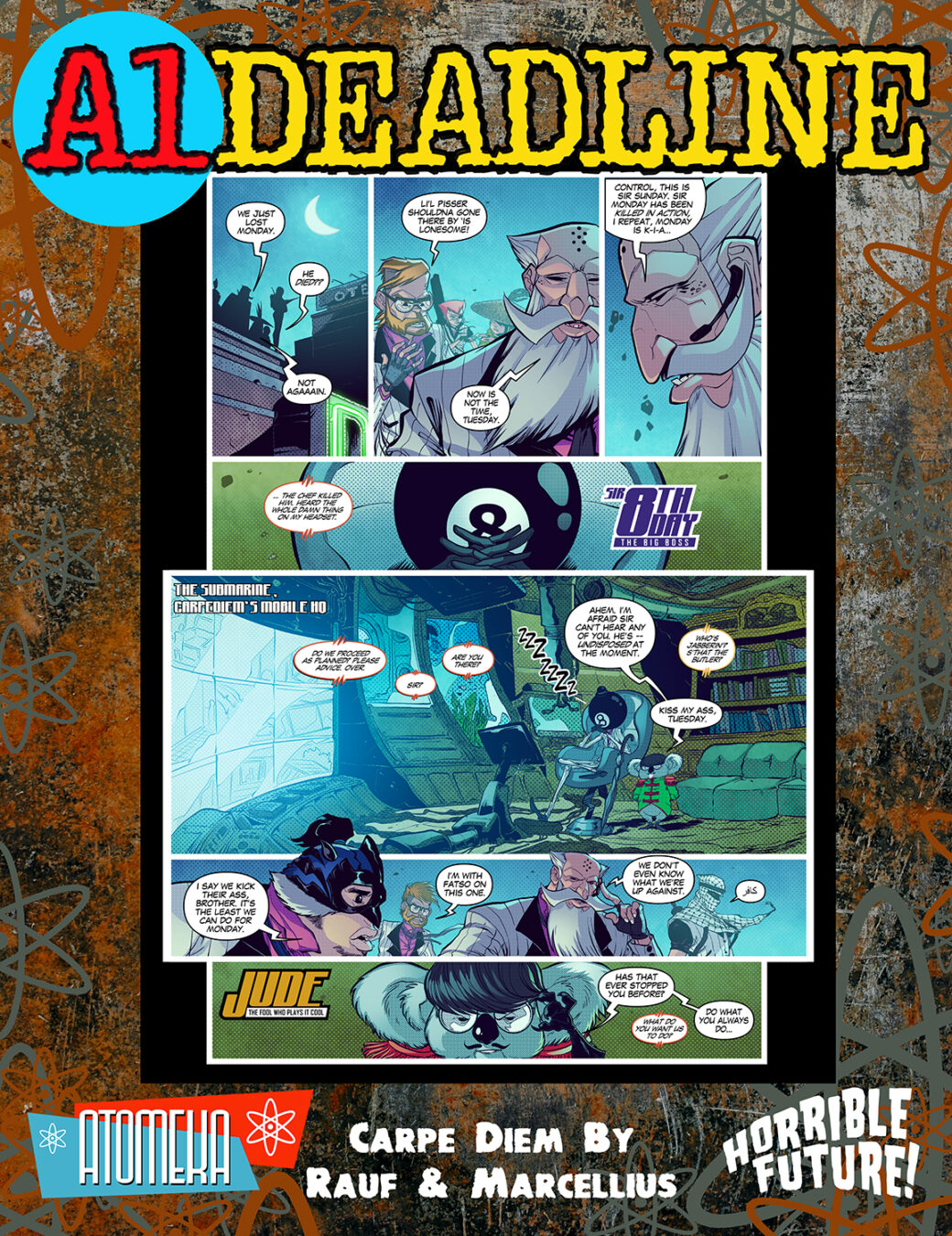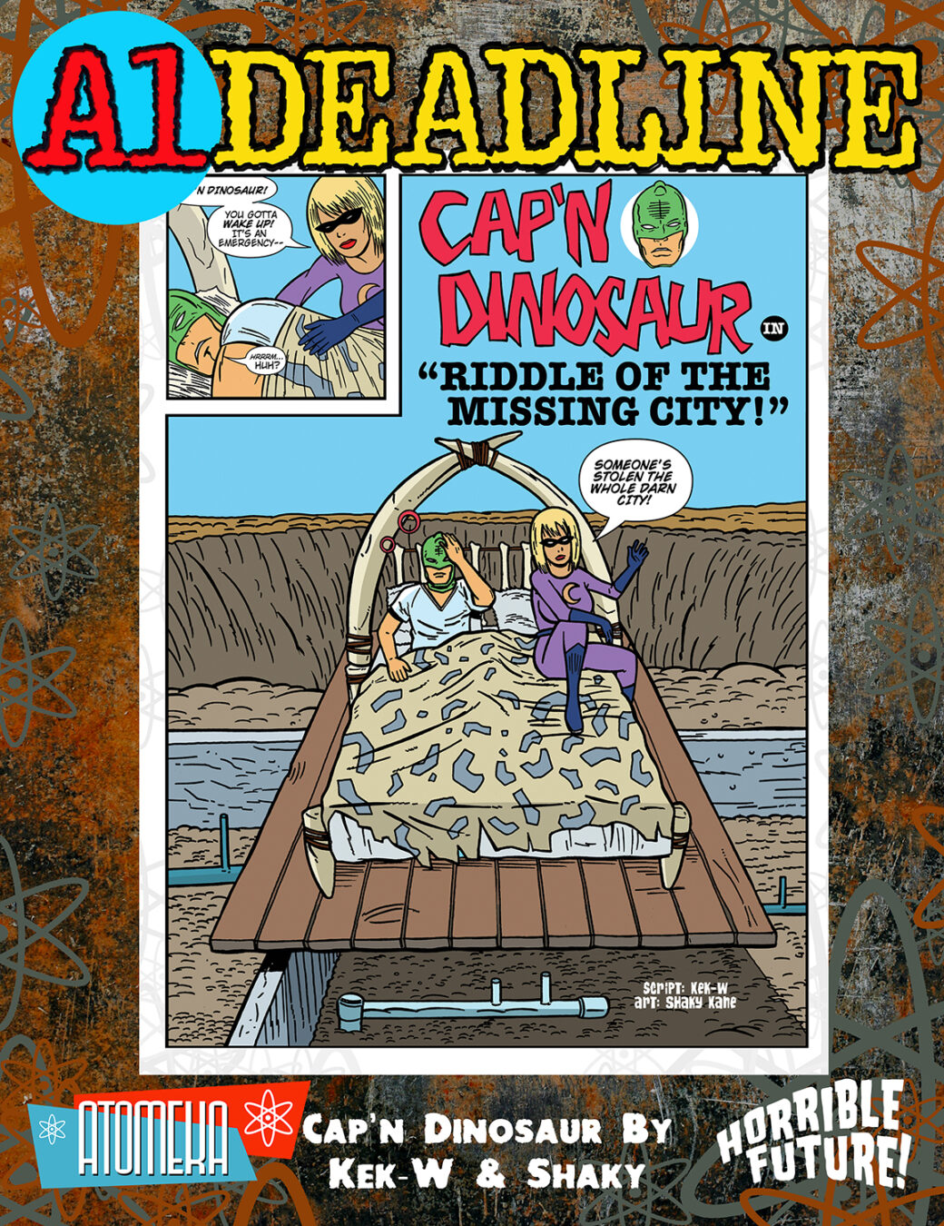 “The last few years have been a hell-hole for creators, publishers, and retailers. So we decided not to take a traditional publisher/distributor route,” says Dave Elliott, co-creator of A1DEADLINE. “Working with Horrible Future and building this Kickstarter ourselves lets us put the artists first, creating a space to make art and tell stories without censorship, in a place where everything between the covers is creator-owned. A place where they can truly feel free. With A1DEADLINE, a new or unknown talent can have their work sandwiched between a TANK GIRL and a Bill Sienkiewicz strip. We’re just here to elevate and amplify. Comics need a magazine