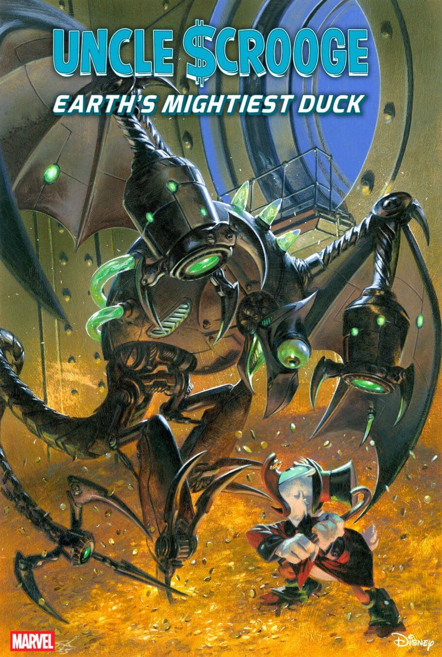 Announced last week at D23.com, Uncle Scrooge & the Infinity Dime scribe and superstar Marvel writer Jason Aaron returns to craft another fantastic Uncle Scrooge saga that expertly blends the wonderful world of Uncle Scrooge with epic Marvel Comics super hero storytelling. Aaron will be joined by an extravagance of all-star artists including Giuseppe Camuncoli, Mahmud Asrar, and Ciro Cangialosi. UNCLE SCROOGE: EARTH’S MIGHTIEST DUCK kicks off in August and today, fans can behold the covers for the first two issues. The covers see how some of industry’s biggest talents—from Gabriele Dell’Otto to Mark Brooks—bring this beloved comic book icon to life Marvel style!