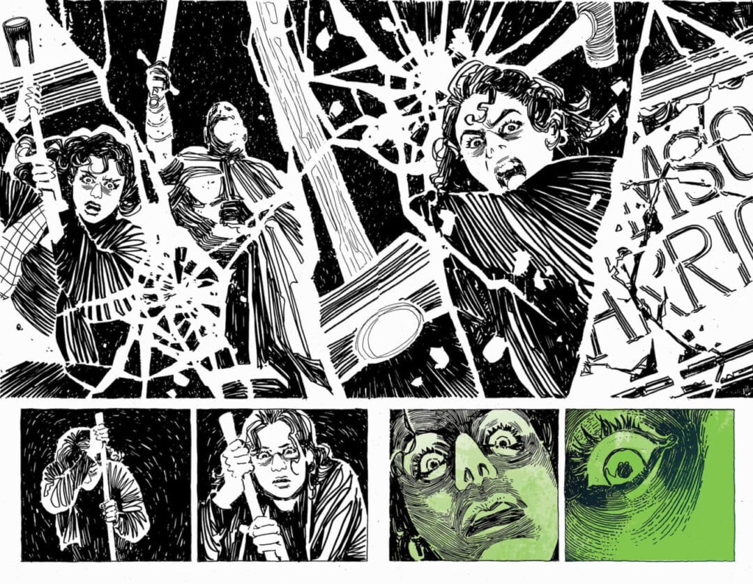 “The relationships Daniel created in this book are so delicate and fragile. As an artist, showcasing this through my linework was important so I took the creative choice of renewing my normal style of heavy blocks of ink and replacing it with textured pen scratches. This doubled the workload considering the length of the book but was totally worth it. Pairing that with Brad Simpson’s excellent color choices and we ended up with a visual I’ll always be proud of.”