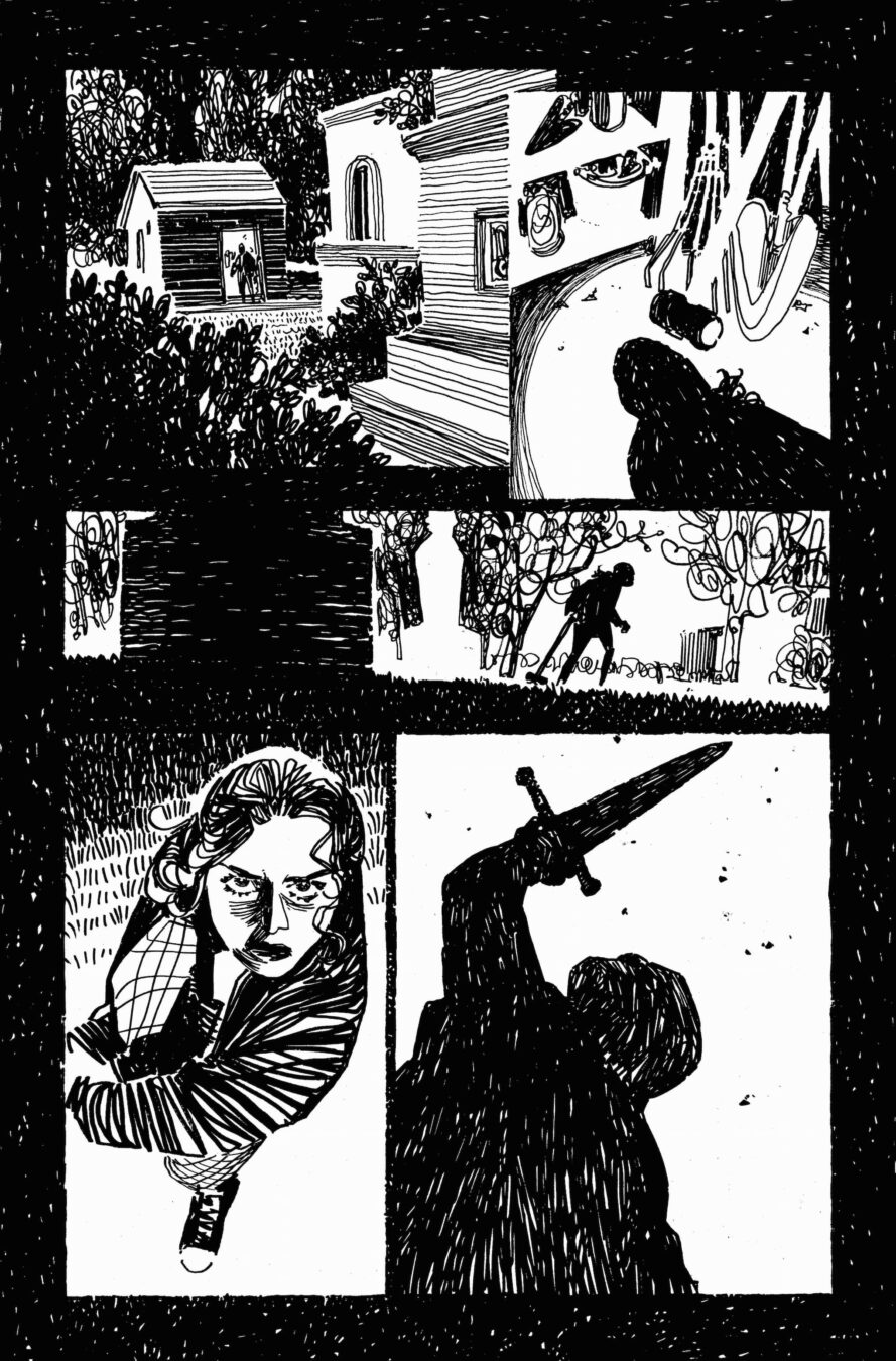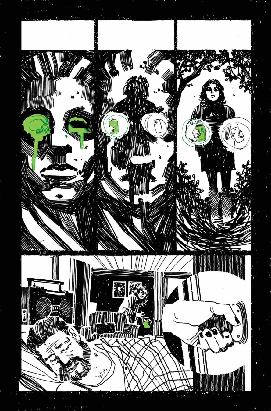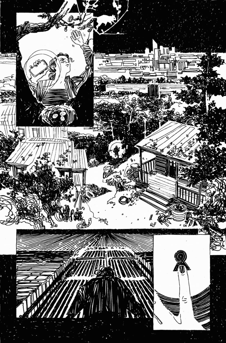 “The relationships Daniel created in this book are so delicate and fragile. As an artist, showcasing this through my linework was important so I took the creative choice of renewing my normal style of heavy blocks of ink and replacing it with textured pen scratches. This doubled the workload considering the length of the book but was totally worth it. Pairing that with Brad Simpson’s excellent color choices and we ended up with a visual I’ll always be proud of.”