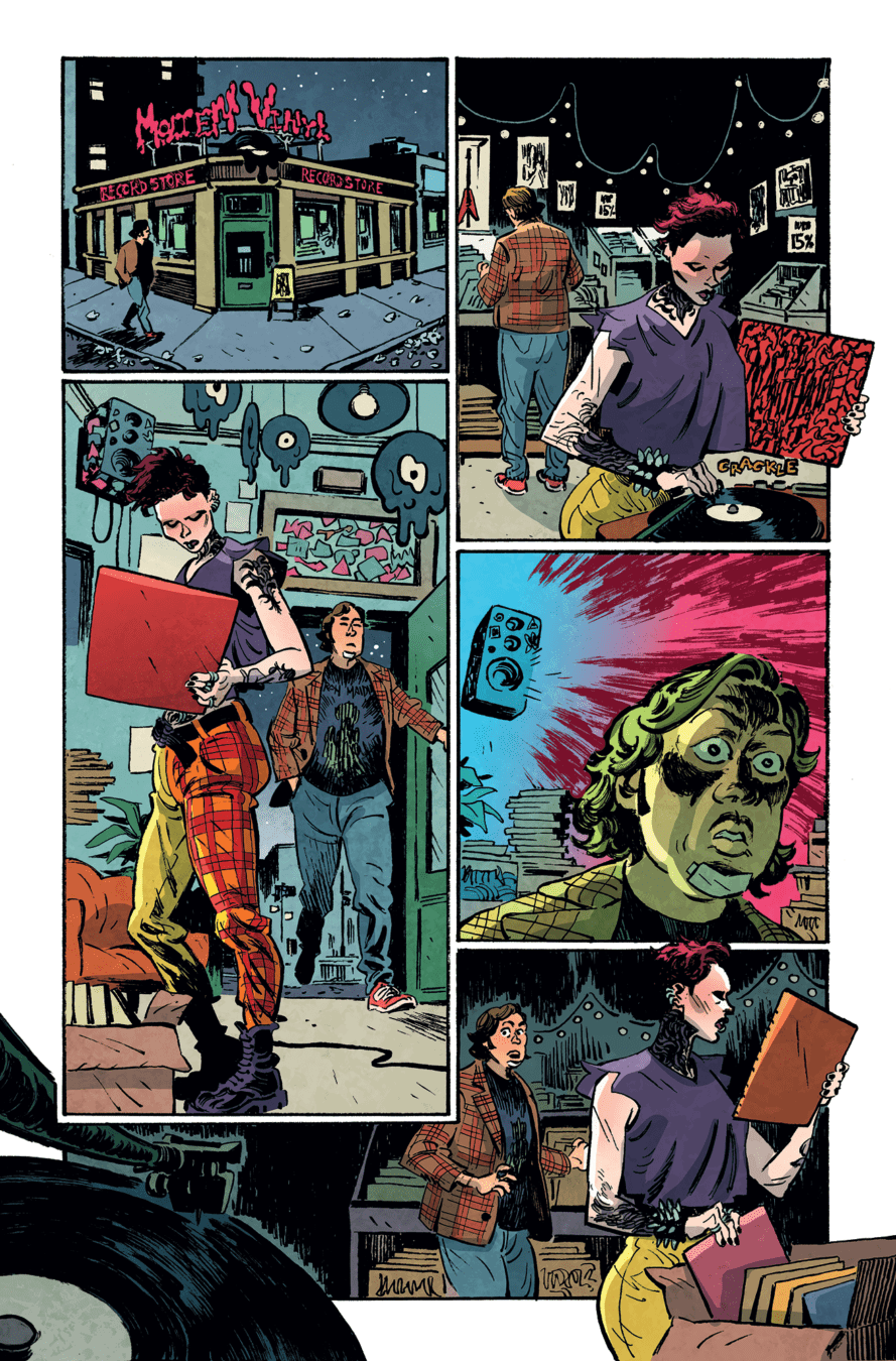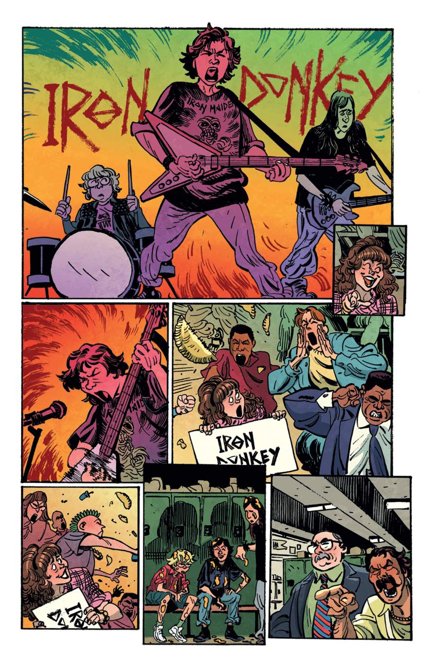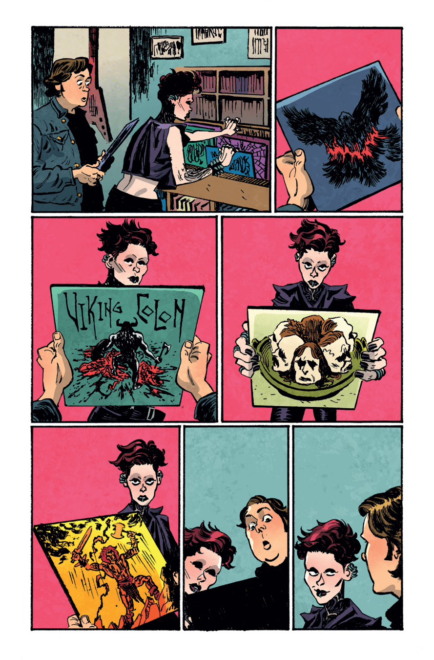 “Back in 2018, Dave Hill sat down with noted intellectual Malcolm Gladwell to finally come clean about his double life. A brilliant comedian, writer, satirist, and musician, Dave has done everything from play sold-out shows with Bill Murray and Tenacious D to write the theme song for John Oliver’s Last Week Tonight on HBO,” said Hunter Gorinson, enthused president and publisher of Oni Press. “But he’d never before revealed the details of how he’d orchestrated a years-long internet hoax by posing as the frontman of a fictional band, only to accidentally touch off an international trail of mayhem that included kidnappings, attempted human sacrifice, and the vandalizing of the last freestanding Bob’s Big Boy restaurant in the Midwest. Call it a guilty conscience . . . but, to this day, Dave still has only told half the story. Now, at last, the raw fury of the DARK REGARDS can finally be told – and, as visually reconstructed through the brilliant artwork of illustrator Artyom Topilin – rest assured: only the comic book medium can totally capture the depraved intensity of what Dave hath wrought on us all.”