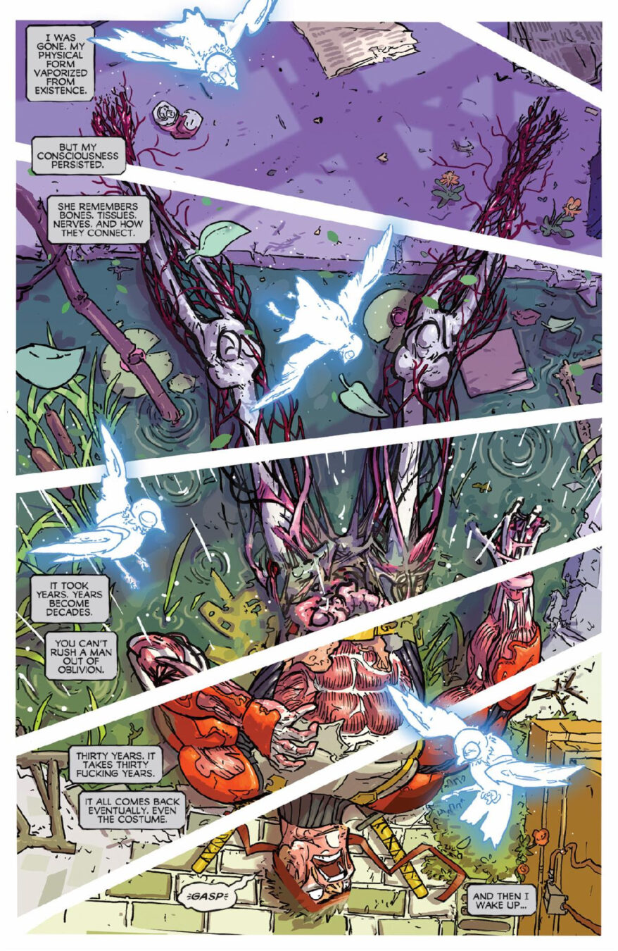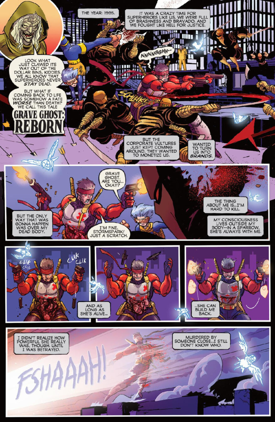 Then, Ryan Stegman and Riley Rossmo introduce the world to the Grave Ghost, a superhero who must solve the case of…his own death!