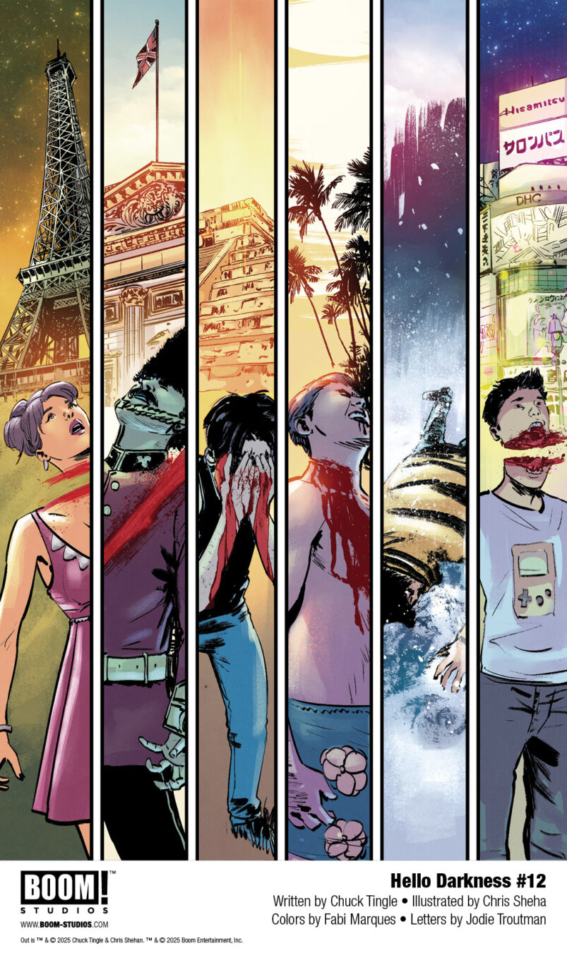 BOOM! Studios today revealed a first look at HELLO DARKNESS #12, the horrifying continuation to the ongoing anthology series featuring the comics debut of USA Today Bestselling author and Hugo Award Winner Chuck Tingle with artist Chris Shehan, in the short story “Out”. This newest issue will be available in comic shops July 2025.
