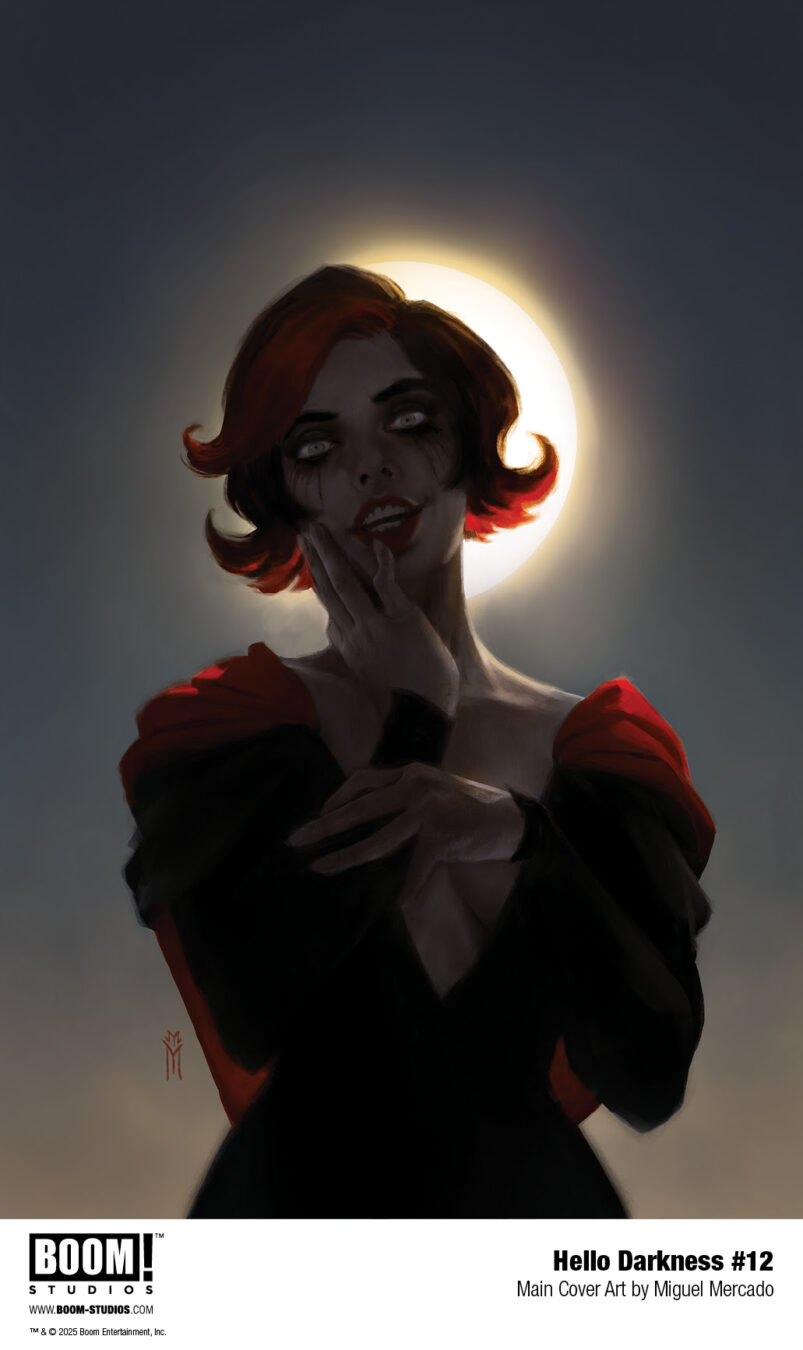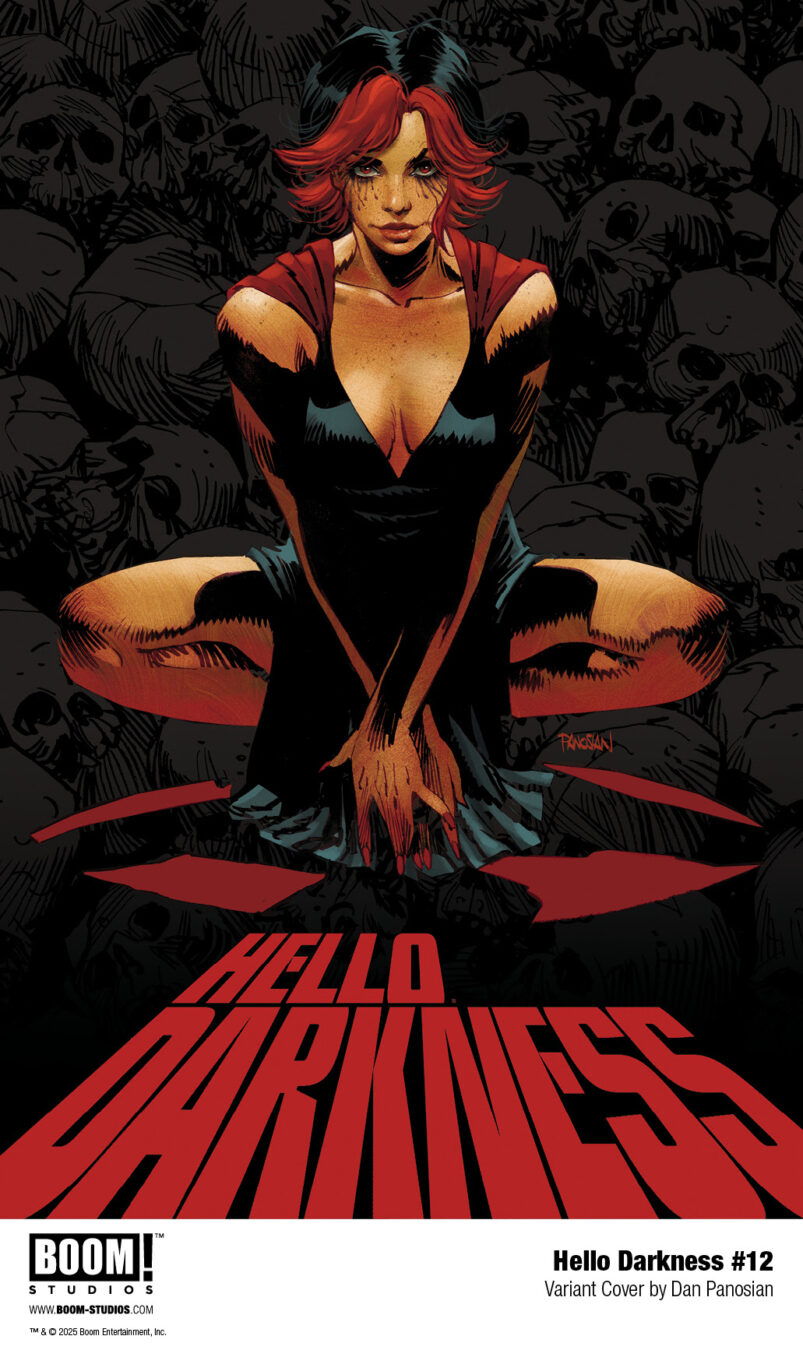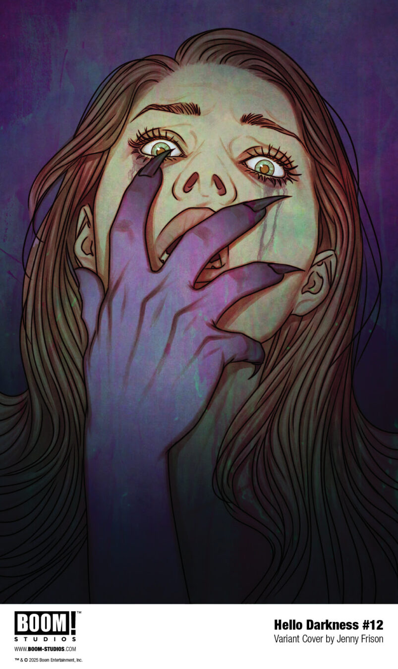 HELLO DARKNESS #12 features a main cover by Miguel Mercado (The Amazing Spider-Man), and variant covers by Jenny Frison (Something is Killing the Children), Martín Morazzo (Ice Cream Man), Dan Panosian (Alice Never After, The Last Boy), and a limited BOOM! Studios Direct Reserve exclusive variant by Jenny Frison!