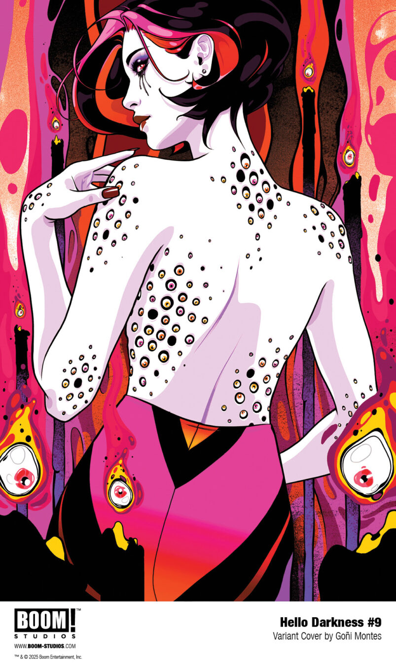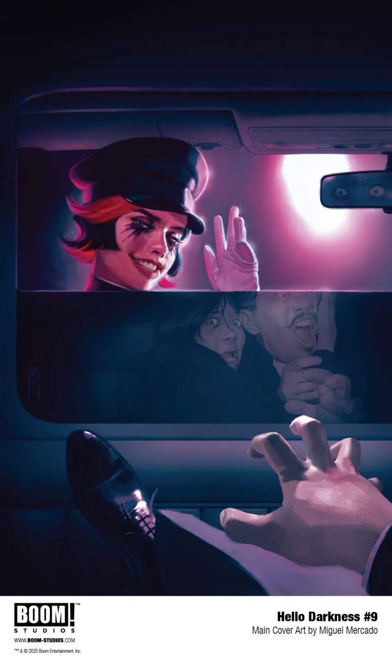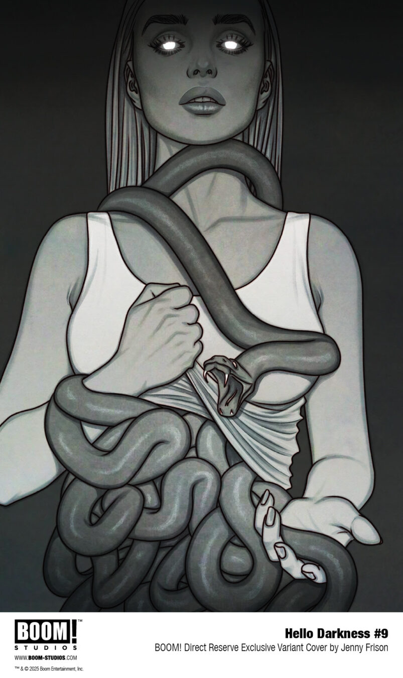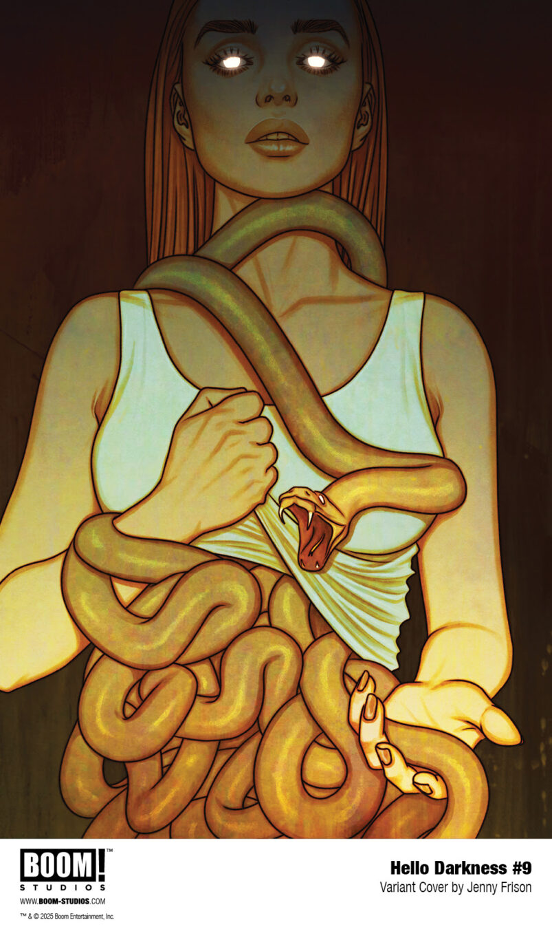 HELLO DARKNESS #9 features a main cover by Miguel Mercado (The Amazing Spider-Man), and variant covers by Jenny Frison (Something is Killing the Children) and Michael Del Mundo (Vision), a special BOOM! Studios 20th Anniversary variant by Goñi Montes (Mighty Morphin Power Rangers), and a limited BOOM! Studios Direct Reserve exclusive variant by Jenny Frison!