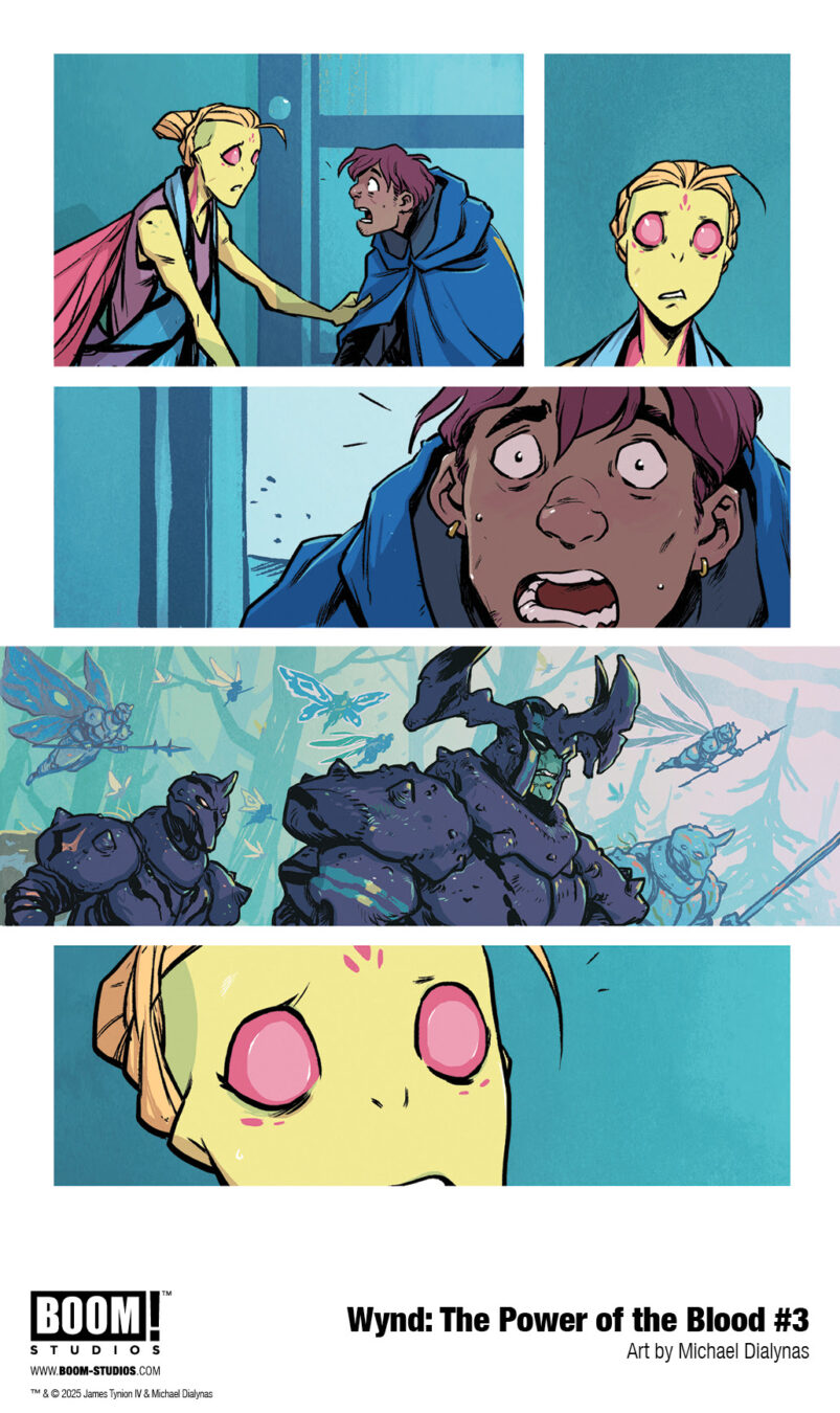 BOOM! Studios today revealed a first look at WYND: THE POWER OF THE BLOOD #3. Eisner and GLAAD Award Winner James Tynion IV, visionary artist and GLAAD Award Winner Michael Dialynas, and letterer AndWorld Design continue the much-anticipated adventures in the years-long, Eisner and GLAAD Award-nominated fantasy series with WYND: THE POWER OF THE BLOOD, with the third issue of the much-anticipated new bi-monthly series continuing in March.