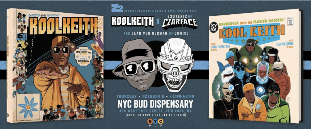 To celebrate Z2’s newest graphic novel, they have teamed up with NYC BUD’S Manhattan location – designed as a scaled-down replica of Grand Central Station for a series of signings, events and discounts for all attendees of the nearby 2025 New York Comic Con. Hip-hop legend Kool Keith and longtime collaborator Esoteric of Czarface will be joined by Sean Von Gorman of Comics to sign their brand new graphic novel Krossover Into The Flower Kosmic on Thursday, October 9th at exactly 4:20PM.