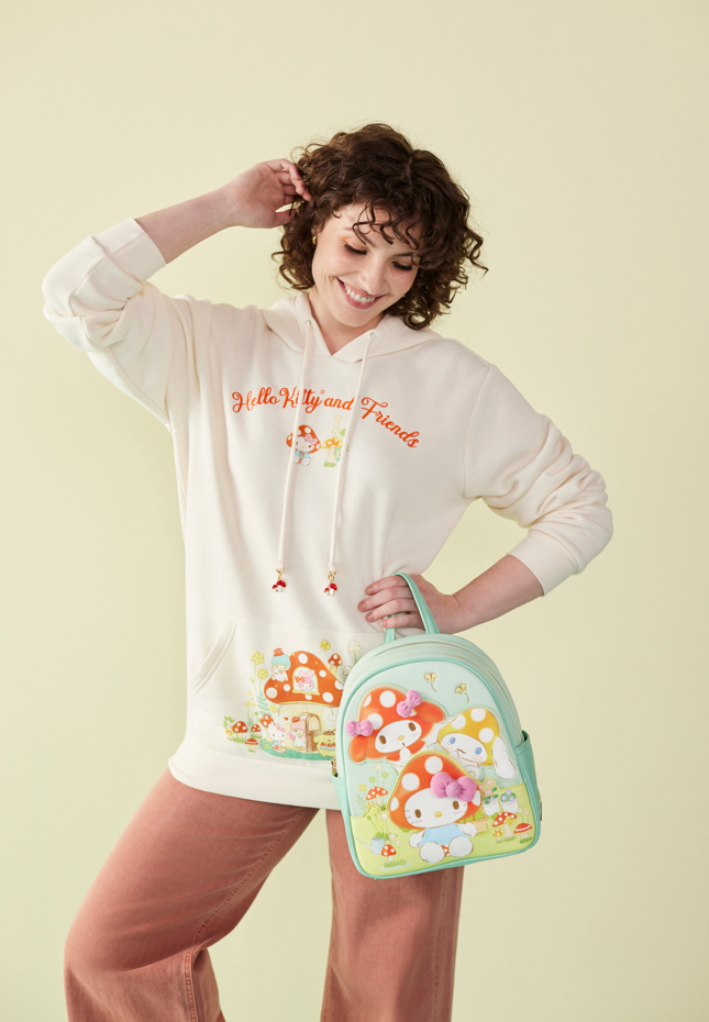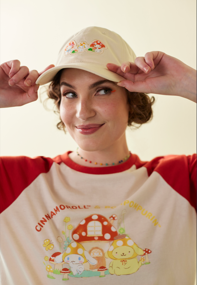 Hello Kitty and Friends are back in a supercute new program featuring vintage-inspired mushroom iconography with adorable new character art. Fan-favorite characters including My Melody, Little Twin Stars, Pompompurin, and Cinnamoroll join Hello Kitty in this exclusive new collection, giving fans of all ages countless ways to wear their love of the kawaii icons on their sleeves. Whether it’s Hello Kitty and Friends mushroom character pins, a playful mushroom-shaped My Melody Loungefly backpack, Pompompurin and Cinnamoroll Raglan Tee, Little Twin Stars Mushroom Tee, a set of Hello Kitty and Friends Mushroom coffee mugs, or even a Hello Kitty and Friends Mushroom License Plate cover, fans of the brand can indulge in their fondness for these timeless characters featuring a new mushroom twist.