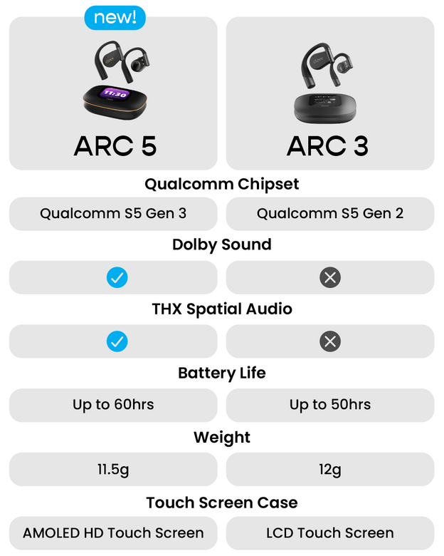 “ARC 5 represents a major leap forward in open-ear audio. By combining THX® Certification and THX® Spatial Audio with improved ergonomic design, a thinner hook, lighter weight, an HD Touchscreen Smart Case, and so many advanced features, we’ve created earbuds that deliver immersive cinematic audio, unmatched comfort, and exceptional value—all while keeping users aware of their surroundings.”