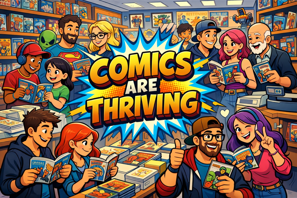 Sure, the industry still faces challenges. Distribution conversations come and go. Speculation sometimes gets a little wild. The business side of comics evolves just like every other entertainment industry. But comics have survived world wars, economic downturns, censorship battles, and the rise of every new entertainment medium imaginable. Television didn’t kill comics. Movies didn’t kill comics. Streaming didn’t kill comics. If anything, those industries borrowed heavily from the creativity that comics have been delivering for generations.