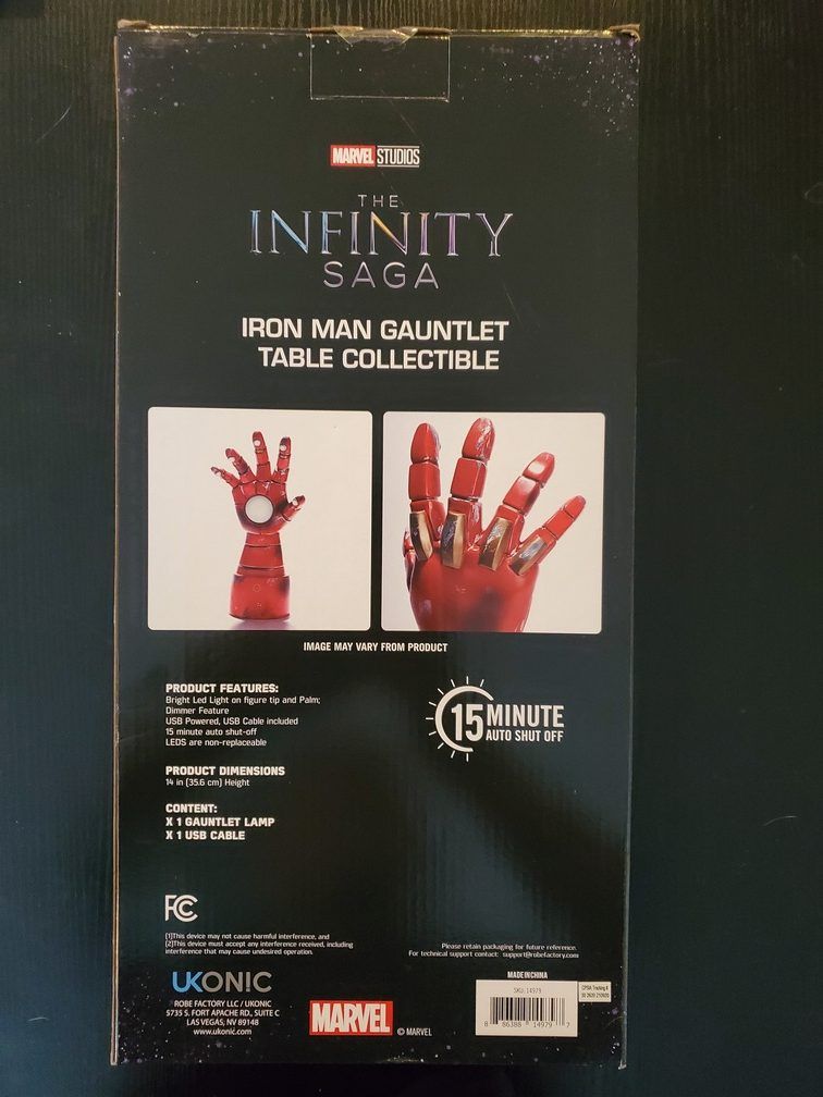 Light up your home with the energy-efficient Collectible Marvel Iron Man Gauntlet LEDÂ Lamp. Measuring 14 inches tall this lamp emits an impressive glow that will brighten up your entertainment space. A built-in 15-minute auto-shutoff feature makes this a great night light for fans of all ages. *officially licensed.