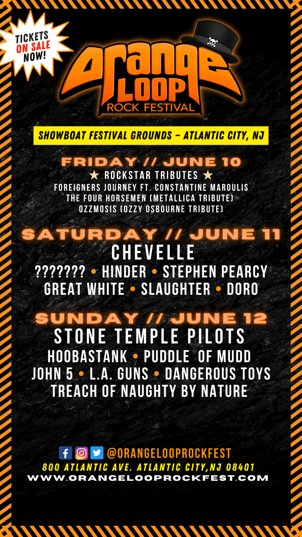 LincStar Events is amped to present the lineup for the Orange Loop Rock Festival taking place at the Showboat Festival Grounds outside the Showboat Hotel in Atlantic City, New Jersey.
