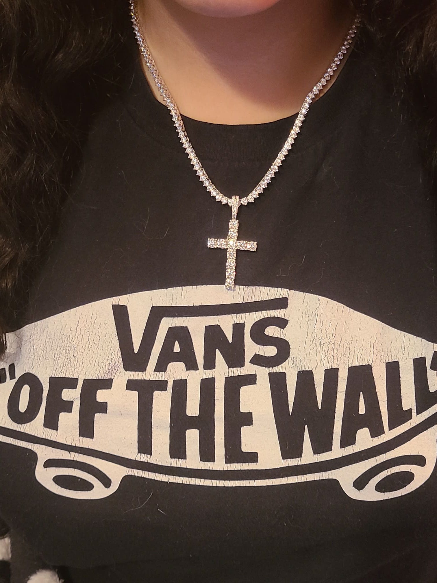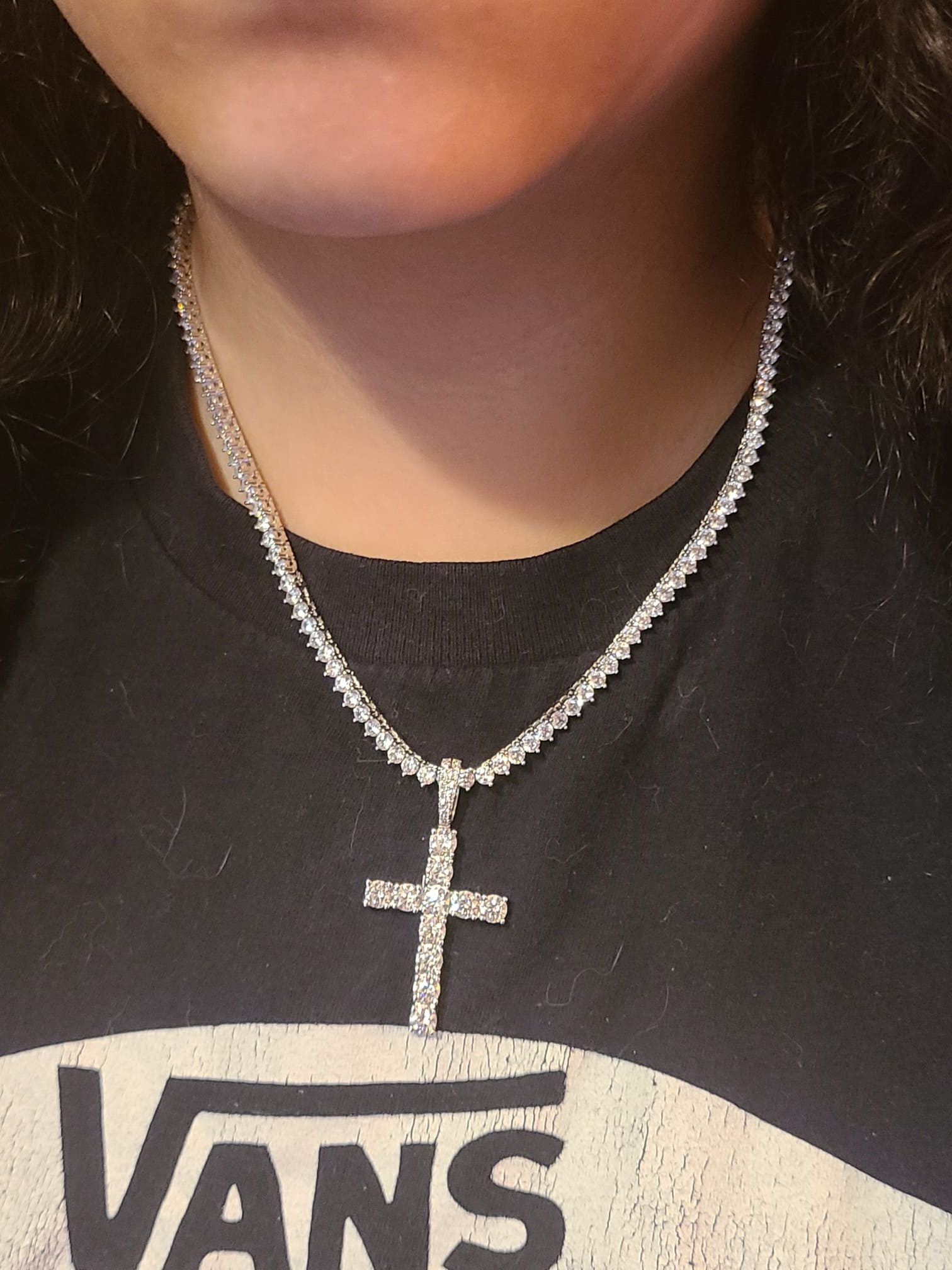 Before we begin a big thank you to Klase for sending this beautiful product over for us to check out. The piece they sent us is a 14k white gold, iced out cross that is the perfect size for any occasion and can be paired with many other pieces to make a great combination. In this instance it has been paired with the New Round Cut Tennis Necklace, which is a great unisex piece. It has round cut stones/diamonds that will catch light from all angles and make you bling all day and night!