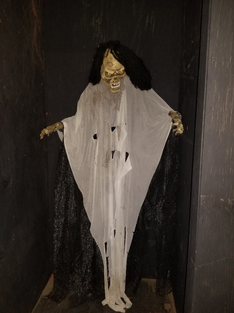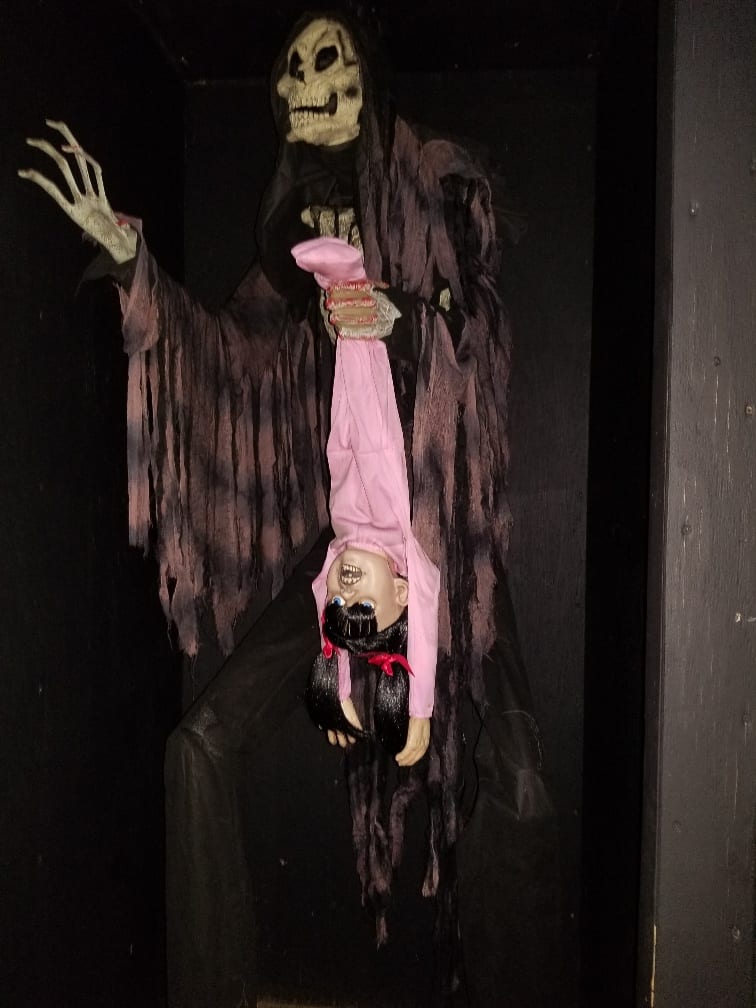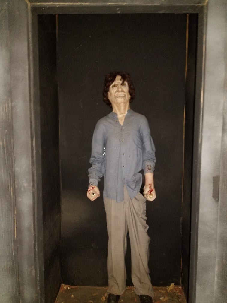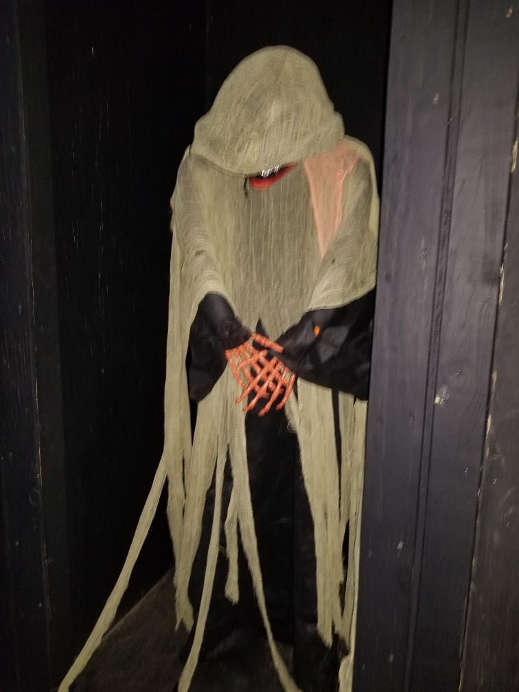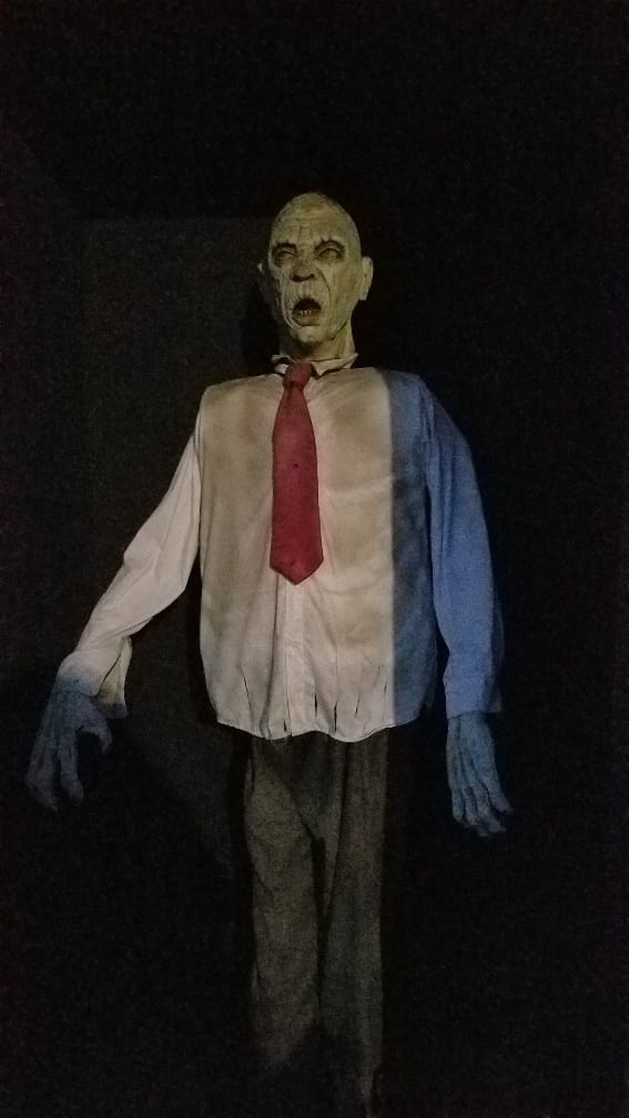 There were alot of cool features, one that I enjoyed was an effect of a rock coming at you ala raiders of the lost ark, well done effect. Then there was a mini bridge with a wall that moved, once you walk through it was the floor that was moving, or so you think, amazing optical illusion that messes with your senses to prep you for more ensuing horrors and geez those blinking lights really messed me up!