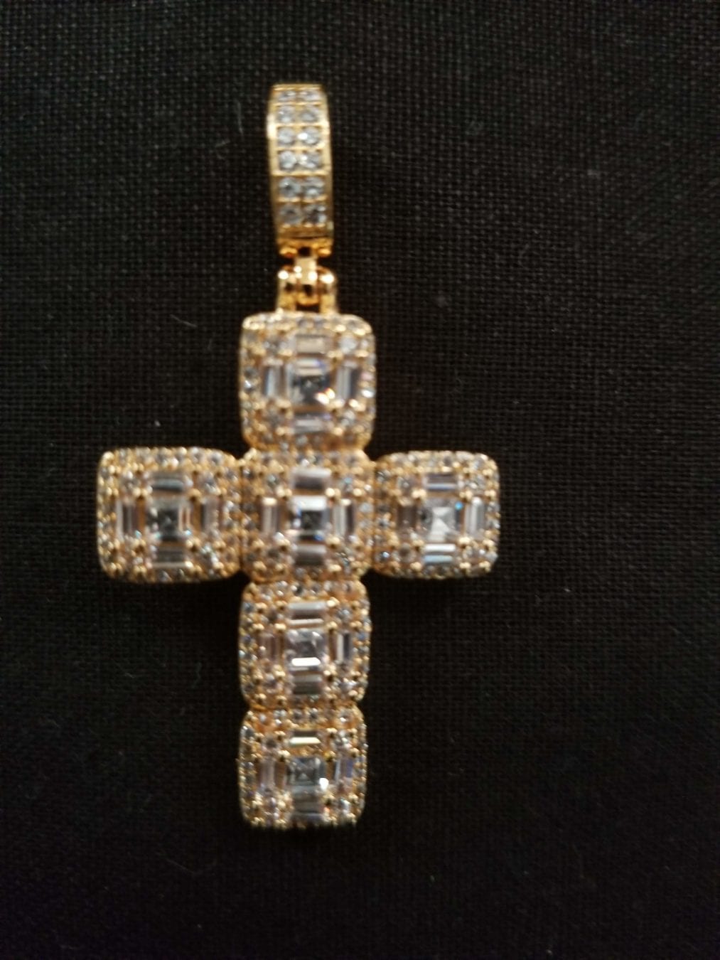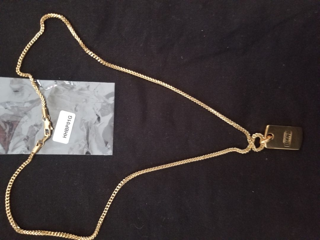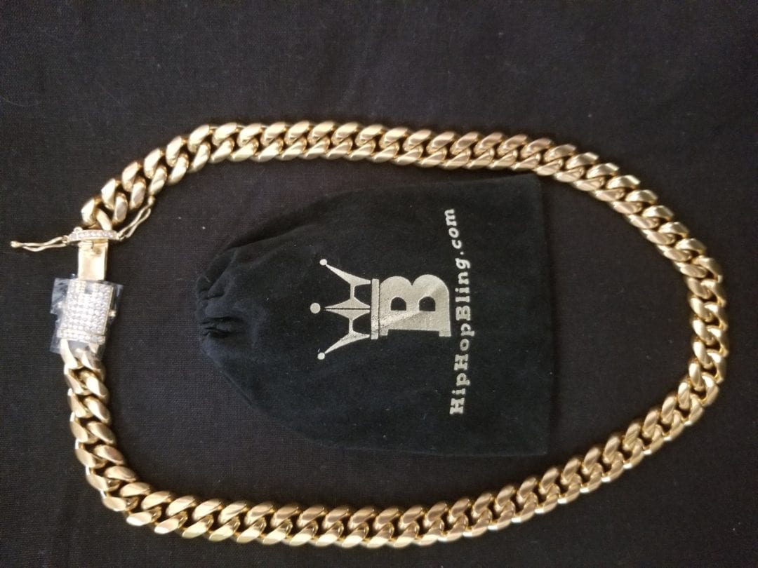 FRANCO CHAIN 2.5MM GOLD STAINLESS STEEL -Â SKU:Â CHFRANCO25MMG-24:Â A simple yet cool looking chain that comes with a HipHopBling.com logo dog-tag, I swapped mine out for the enclosed cross CZ diamond pendant. Has a secure lobster claw clasp but is long enough that you just pop that bad boy over your head and you’re good!Â