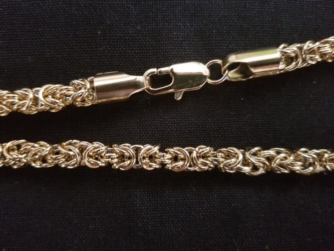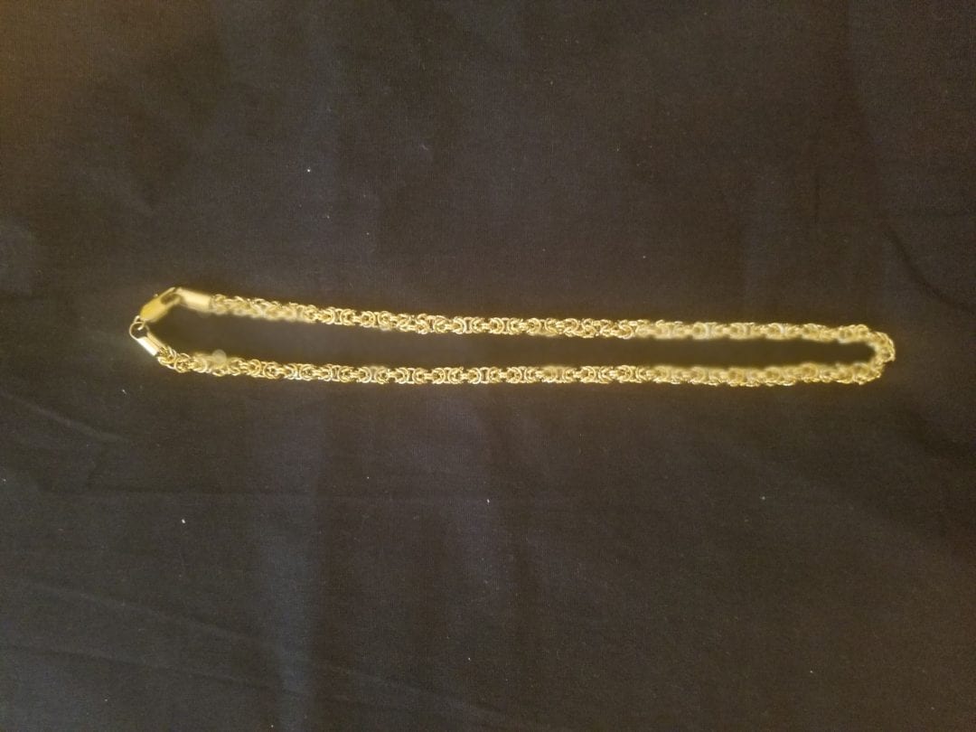 BYZANTINE IP GOLD STAINLESS STEEL CHAIN NECKLACE 6MM -Â SKU:Â SN205G-18: This chain is really flexible and should be worn as is with no pendants. Great old school looking design with a secure lobster claw clasp.