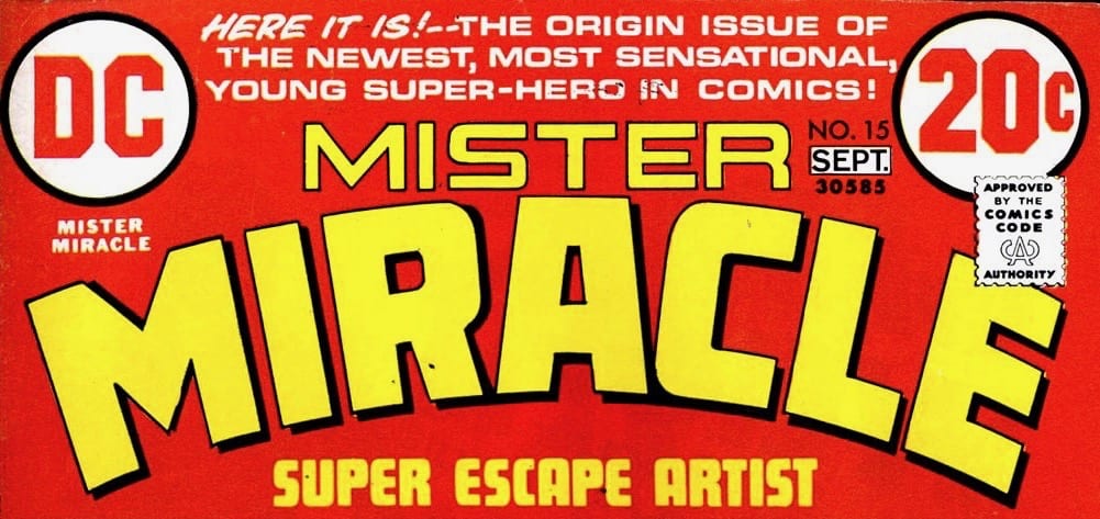 Readers couldn“t have known why the first book out of the gate by Kirby, once The King had arrived at DC, was this rather odd choice. Kirby picked the book since it was without a fixed creative team and he did not want for some fellow creator to lose his job only because he had jumped ship. And for a while it would seem, to the readers at least, that all the hoopla created by these house-ads was just for Jimmy Olsen, because this was to be the only book with Kirby writing, and his art of course, to appear. But Jack had envisioned four interlocking titles, Olsen and three new series, with their total number to go neatly with his grand idea, soon to be called “The Fourth World”“. But DC wanted to introduce the latter three in their try-out book Showcase in the following month. Kirby refused. He wouldn“t be denied again. The three series would be released finally, albeit with some delay to allow for a re-scheduling of production. And it turned into a staggered rollout. The first to arrive were The Forever People, very much in keeping with the theme of the youth culture meeting a brave new world he had started in Olsen which by now had served as the sole, yet effective launchpad for his sprawling concepts. Next up was a book with the title The New Gods. And before anyone even thought that this was but a boastful, empty claim, Kirby told you, no, this was a declaration of war. While the cover already let you know: “When the old gods died”¦ there arose The New Gods”“, with the last two words making up the name of the series, hence in huge letters, and that this was indeed “An Epic for our times!”“, the splash page not so much reiterated Kirby“s bold profession as it simply reverberated it. Only The King of Comics would dare lay waste to an entire fictional universe, but that was what he did. And even though he had done nearly the same thing almost four years earlier, when in the Tales of Asgard backup in Thor No. 127 and 128, he had unleashed Ragnarok and its Aftermath, this time his motives were decidedly different. Too lightly he had given his many creations away to Marvel to serve as the pillars of their universe. Now he would build a new one. For there to be new gods, the old gods had to be destroyed first. Albeit, these complex intricacies were most likely lost on readers who could not have known of his frustrations, or how often he had pinch-hit with but a day“s notice, even though they mightn“t have cared if they knew. Then came the fourth title. Now if you as a reader gravitated to superhero offerings, and ultimately this was what you were looking for in the new Kirby titles, then clearly among the four books here was your top pick. The last to arrive, Mister Miracle not only looked like a superhero, he sounded like one for sure. There he was, Jack Kirby“s new superhero, strapped to a rocket that had already lifted off, while the miscreants, who had brought the superhero into such a predicament, and who just now stood on a rooftop, grinningly looked on with sadistic glee on their faces and taunts on their lips. One even giving a fist pump. But with just one single word balloon, our masked hero let us know that he got this. A decade earlier, on the cover to their first adventure, each member of The Fantastic Four in turn had assured us, that even if it looked like all hope was lost, they were beings with awesome powers who could handle any situation, including the one at present. Whereas Reed and the others had looked roughly hued and undefined, Mister Miracle looked perfect in his costume that was but a cascade of bright colors. And thus, with confidence and conviction he spoke: “My enemies think that escape from this is impossible. But they are in for a rude shock!”“ But so were readers. Yes, on the splash page there was the hero as seen on the cover, and Kirby immediately got to the action. But then it got revealed that he was old and unsure, living off his past glories. A young guy had entered the story, and if at first it looked like he would be set up as the sidekick, he quickly was performing feats that far surpassed anything the old guy could even hope to dream of. How he did this and how it was possible that he could outdo the hero of this new series was at best, just hinted at. And then, suddenly, in the middle of the issue, Mister Miracle died. The rest of the issue either, did not offer much in way of an explanation. The young guy, identified as Scott Free, took over as Mister Miracle and teamed-up with the former“s assistant. This story read like perhaps it had been intended for a double-size issue, and due to some mistake, half of the book was missing. What a scam. What a disappointment.