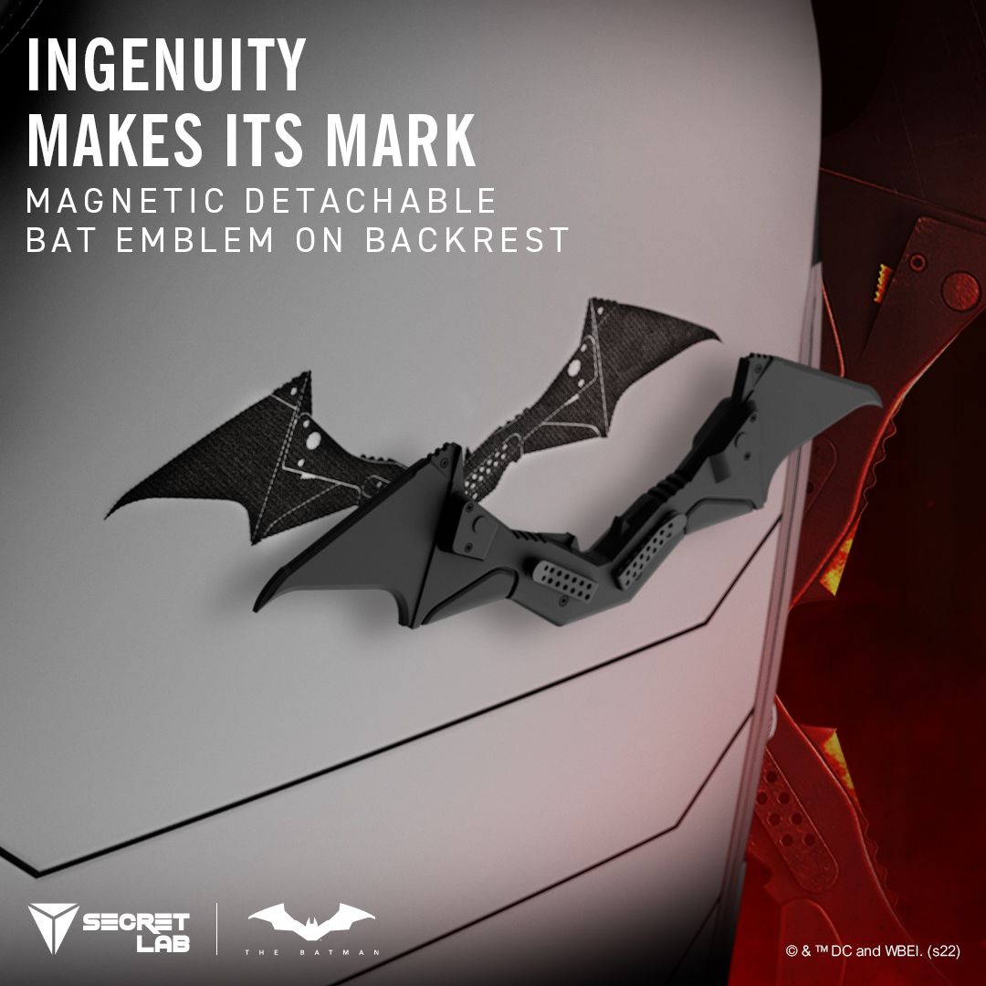 The officially licensed Secretlab ‘The Batman’ Movie Edition chair comes accompanied with a magnetically detachable Bat emblem — the first for any gaming chair.