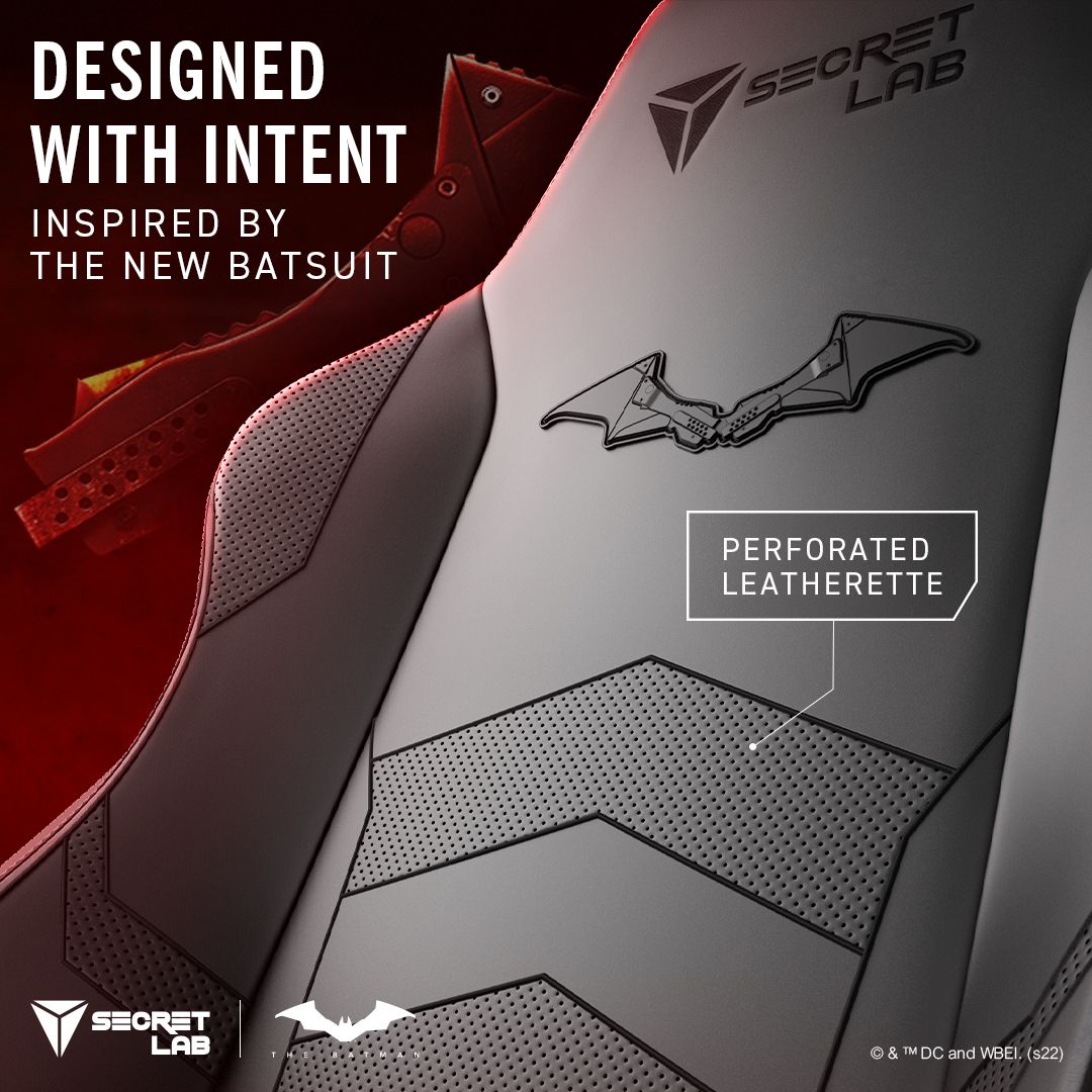 Upholstered in full black Secretlab NEO™ Hybrid Leatherette with perforated matte leather detailing and a brand-new Bat emblem that magnetically attaches to the backrest, ‘The Batman’ Movie Edition chair features nuanced details inspired by Batman lore to create a statement piece for Super Hero aficionados.