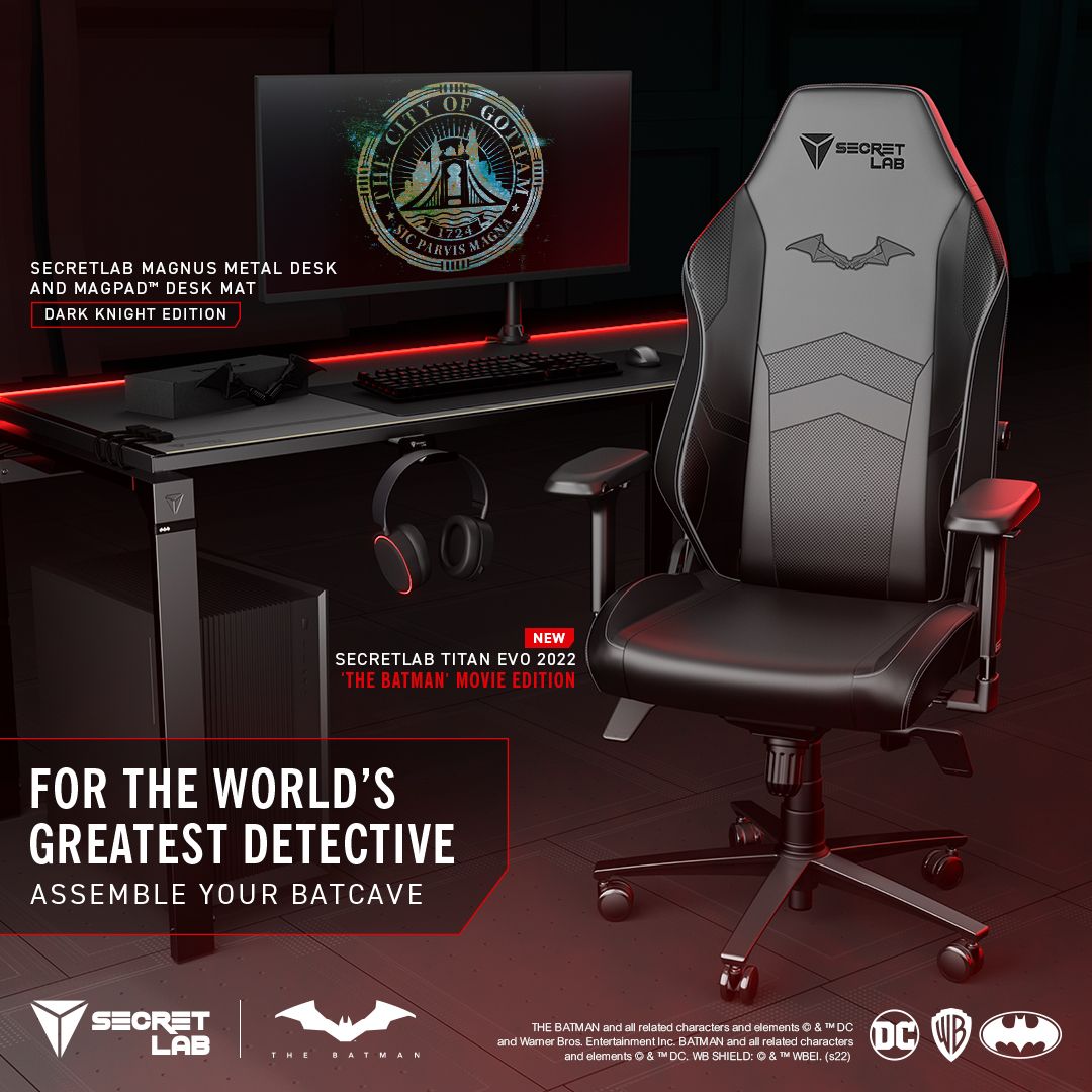 Secretlab unveils the all-new ‘The Batman’ Movie Edition chair, the latest addition to its collection of iconic DC Super  Hero- themed gaming chairs. An official collaboration with Warner Bros. Consumer Products and DC, Secretlab  has  created  an  homage  to  the  new  Batsuit,  with the addition of a magnetically detachable logo on its award-winning TITAN Evo 2022 gaming chair. ‘The Batman’ hits U.S. theaters March 4 and internationally beginning March 2.