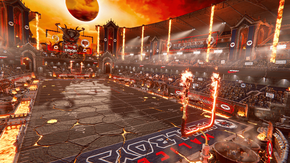 Doom Field Designer: Design your team’s arena, strategically placing lethal hazards and manipulating the weather — buzz saws to trim the competition, fire geysers to turn up the heat, or drop a blizzard on those fools. Make your stadium into the kind of place where only your team loves to play, and everyone else just prays to survive.