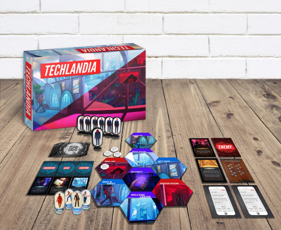 Techlandia, a new tabletop board game about a major technology company secretly run by an evil cult, is live now on Kickstarter, with a campaign that will run for 30 days. Designed by longtime tech journalist, author, and TV news talking head Dan Ackerman, the game tackles digital/tech themes with a distinctly analog approach. Ackerman, author of the award-winning game history book The Tetris Effect, says, “The game takes a classic Douglas Adams satire vibe, adds a dose of Lovecraftian horror, and combines it with our obsession over smartphones, spyware, digital privacy and hacking.”