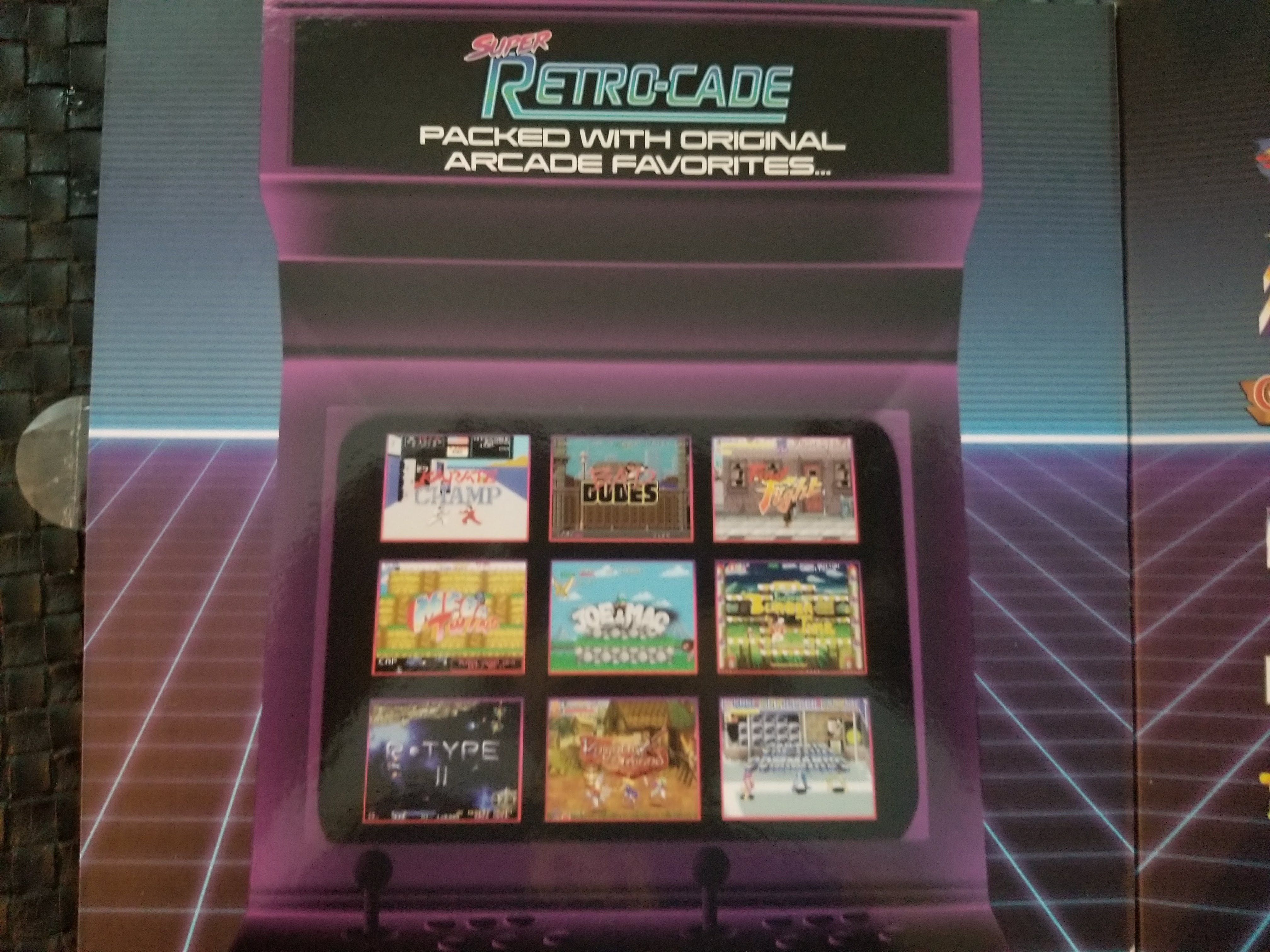 Let’s start with the packaging, it looks great, eye-catching with Mega Man on the cover, lift up the lid and you get a breakdown of the most popular bunch of the titles in the console. Flip it over you get some details and a full list of titles included. The box is made for portability as it has a built in handle. Go here to see complete list. See pics below: