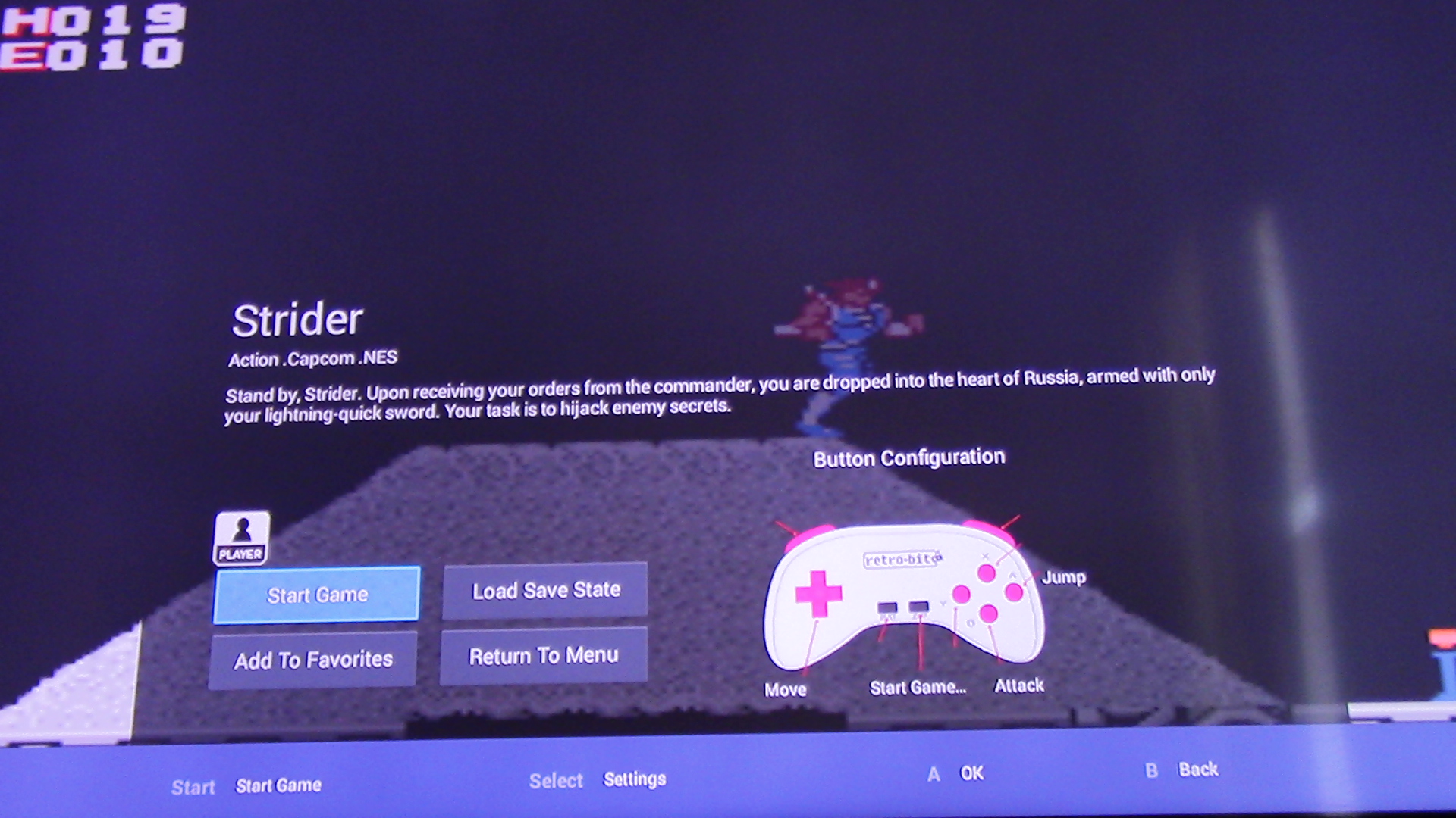 Taking a look inside the box, the unit is packaged nicely. At first look you get a look at one of the controllers and the unit itself. The console is is a bit smaller than my hand, it console has 2 front USB ports where you’d plug in the controllers, in the rear you’ll find RCA and HDMI options for video as well as an SD memory card slot and of course the power port. Having the option between RCA and HDMI and realizing the differences between the 2 is astonishing, the HDMI really cleans up the imagery of these classic games. See below:
