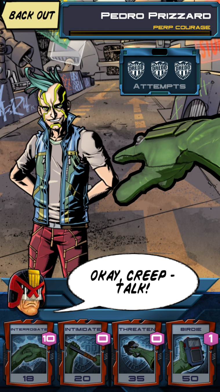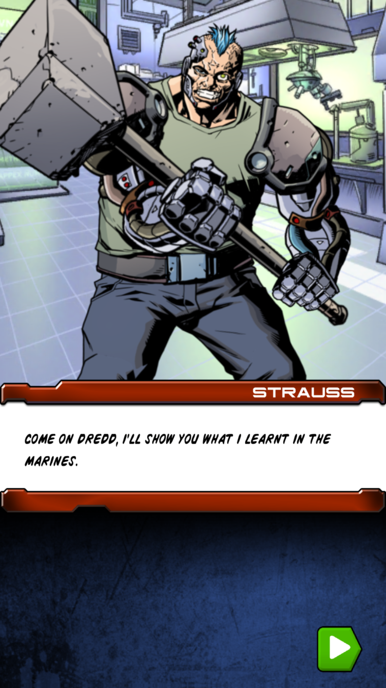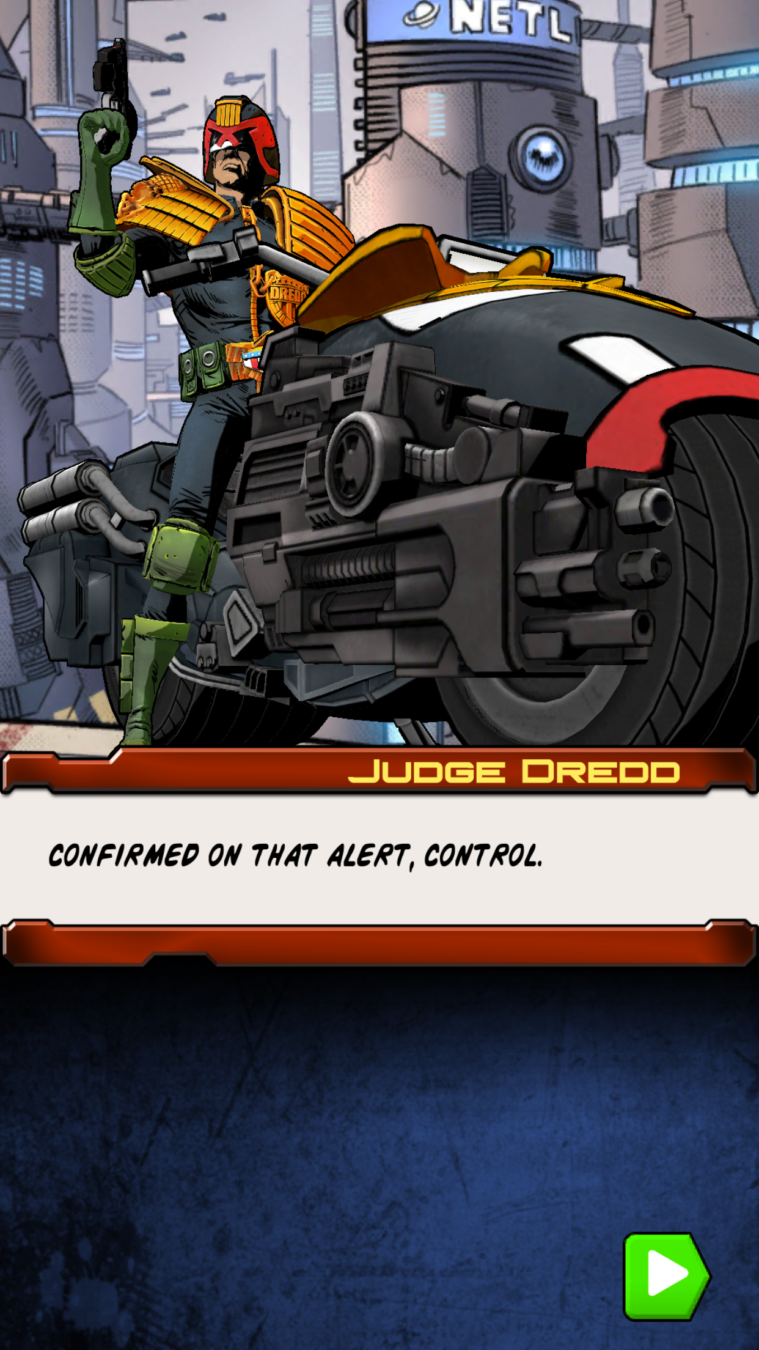 In the game, players take on the role of Judge Dredd. Using intuitive card battling gameplay, build a deck of iconic weapons and dispense Justice to criminals and perps both old and new. Combining 3D animations with 2D animated comic artwork created by Dredd artists, the player will experience what it is like to be the futures most famous lawman as they fight through patrols and epic stories written by current Dredd writers.