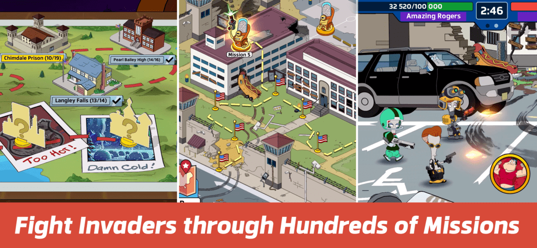 In American Dad! Apocalypse Soon, players will experience the signature satirical humor of the animated show as they guide Stan through the most important mission of his life. The game begins when Stan discovers that Francine, Hayley, and Steve have been kidnapped by mysterious aliens known as “Collectors.”“ In order to rescue them and repel the alien invasion, players will use advanced CIA technology to clone Stan“s somewhat reliable extraterrestrial ally, Roger, outfit dozens of Roger duplicates, build an underground base, fortify the Smith family home, and assemble an army capable of defeating the Collectors and saving his family. Save the Smiths, save the world!