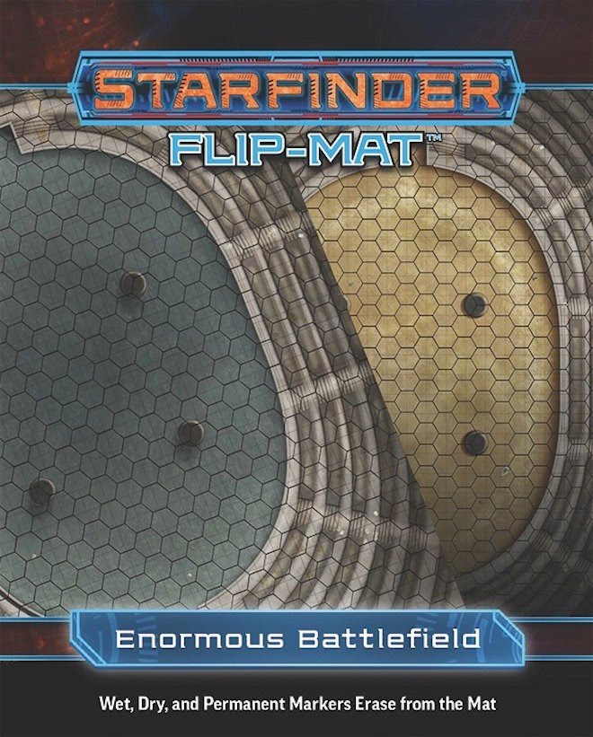 Get ready to throw down on the biggest battlefields Paizo has ever published! This immense 30” by 46” double-sided map features a massive urban battleground on one side and the ruins of an icy trench battlefield on the other. Starfinder Flip-Mats present ready-to-use science-fantasy set pieces for the busy Game Master. If you need a bloody backdrop for the players to show their valor or a fitting ground for their mechs to shine, Starfinder Flip-Mat: Enormous Battlefield has you covered!