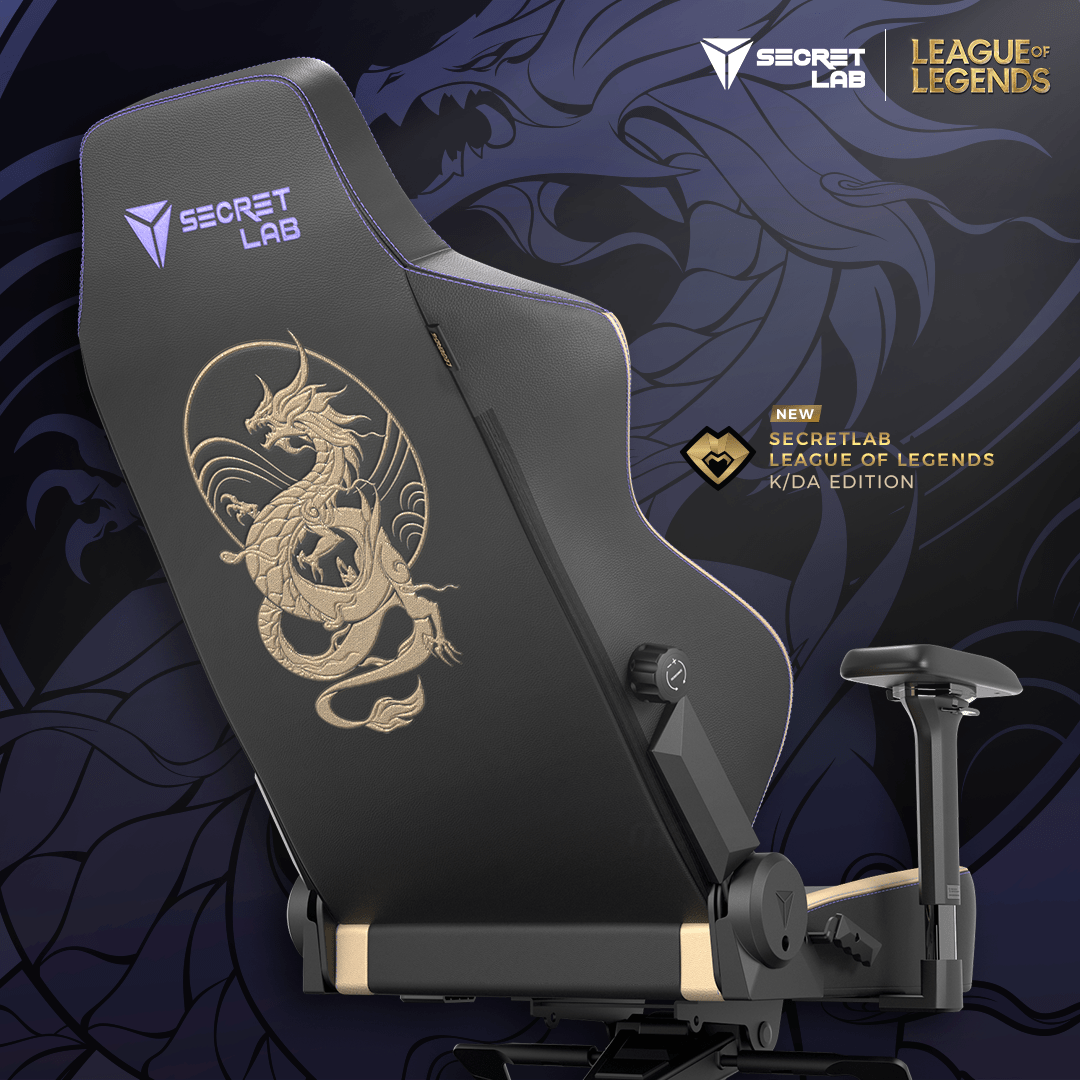 The Secretlab League of Legends K/DA Edition captures the dark allure and snazzy beats that propelled POP/STARS to the top of the World Digital Songs chart. Inspired by Akali, the show-stealing rapper of the group, this special edition seat is upholstered in decadent purple and gold and features Akali“s signature dragon stitched in elaborate gold thread on the rear. Drawing heavily on Akali“s one-of-a-kind look of luxe and grunge, the chair also boasts diamond-quilted side wings that recall Akali“s stunning K/DA get-up.