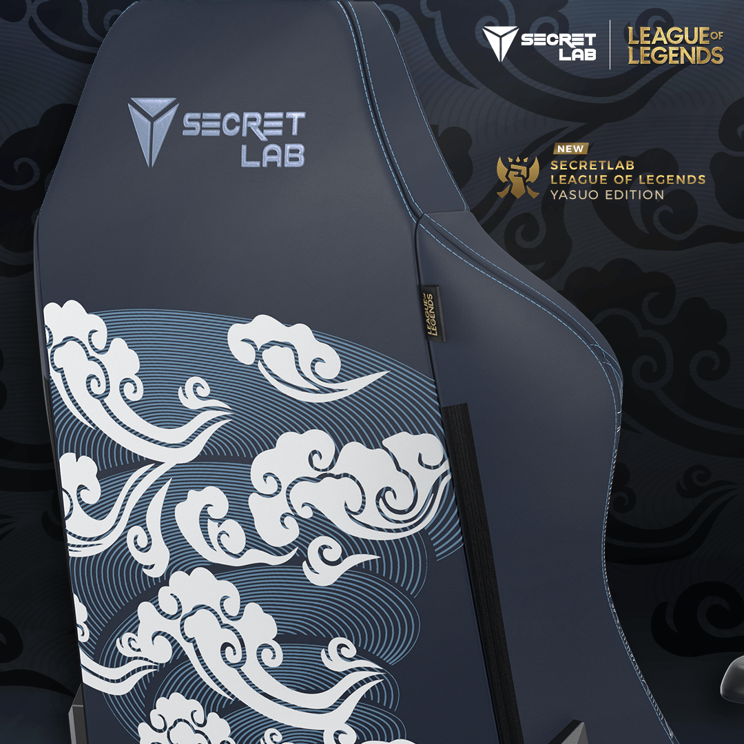 Featuring the master swordsman“s katana and a veritable tempest at its back, the wings of the Secretlab League of Legends Yasuo Edition are embellished with the wind and clouds in the style of traditional ukiyo-e art and detailing inspired by Yasuo“s armor. Clad in a mesmerizing deep navy and weave detailing influenced by the rope around Yasuo“s waist, the chair is a faithful rendition of Yasuo“s classic skin.