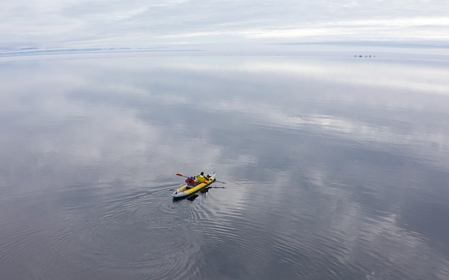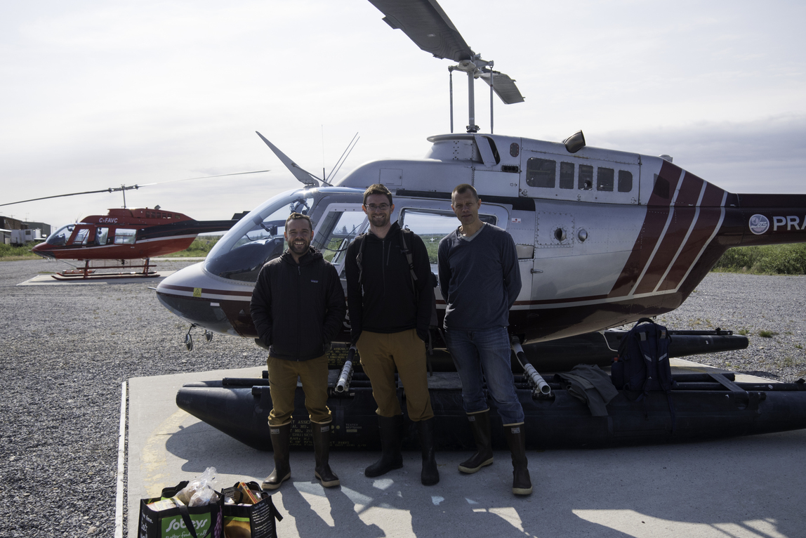 From left to right: Directors of Photography Hayes Baxley, Owen Bissell, and Peter Kragh prepare to film belugas in remote West Hudson Bay. (National Geographic for Disney+/Hayes Baxley)