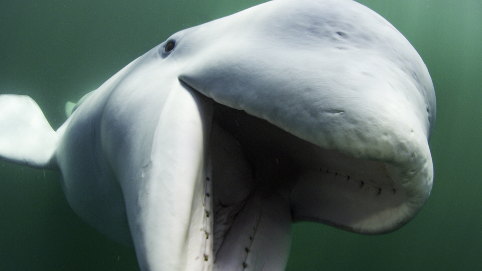 Despite having teeth, belugas do not chew their food. They rip up prey into pieces and swallow them whole. (National Geographic for Disney+/Peter Kragh)