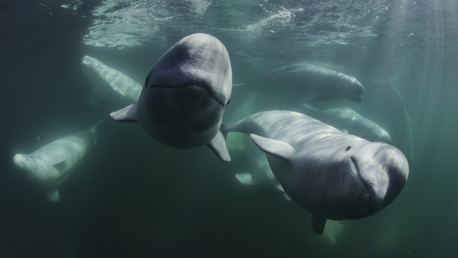 Belugas are extremely social and have been nicknamed the “canary of the sea” because of their rich and varied vocal range. (National Geographic for Disney+/Peter Kragh)