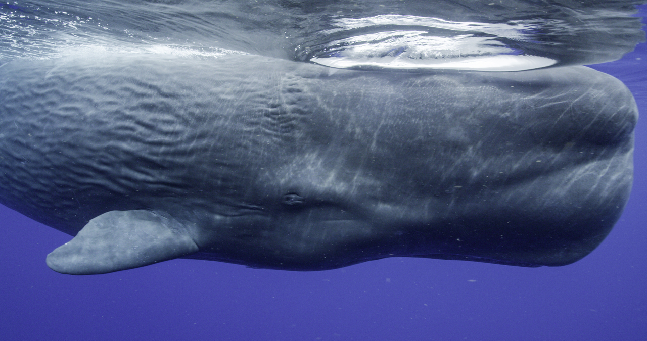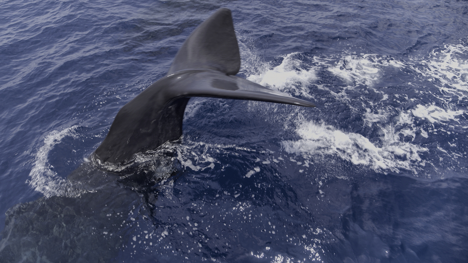 Sperm whales prefer to hunt far beneath the surface. They routinely stay an hour below and can explore as deep as 10,000 feet – all on one breath. (National Geographic for Disney+/Hayes Baxley)