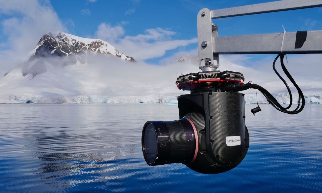 Aerial cinematographer Thomas Miller films elusive Arctic whales with a specialty camera stabilizer called a Cineflex. (National Geographic for Disney+/Thomas Miller)
