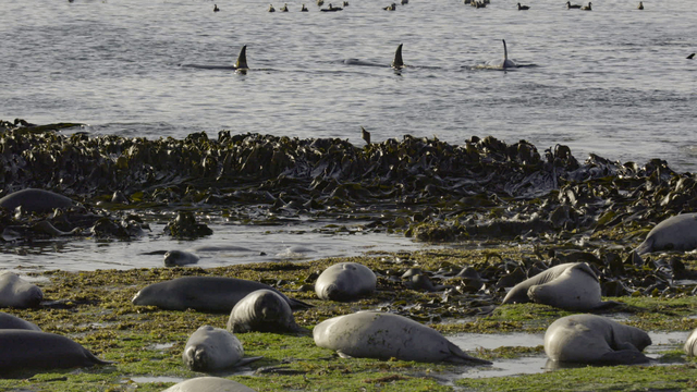 Orcas in the Falkland Islands pursue powerful elephant seals – a feat they can’t do alone. (National Geographic for Disney+/Kevin Krug)
