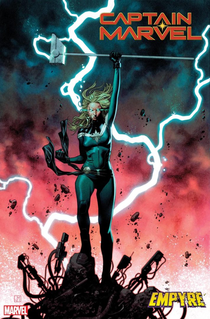 In a heated interview, co-host Tucker Markus gave Ryan “Agent M”“ Penagos the latest news on Marvel“s 2020 saga, EMPYRE! In addition to the cover of EMPYRE #3, Tucker spilled details on exciting new tie-in books including the mysterious new Stormranger“s first solo quest in EMPYRE: STORMRANGER, the cataclysmic battle in EMPYRE: INVASION OF WAKANDA, and the unlikely team up in EMPYRE: SAVAGE AVENGERS. And for one Avenger, the events of EMPYRE will herald a major change”¦ Get your first look at Captain Marvel“s new role as the Supreme Accuser in CAPTAIN MARVEL #18!
